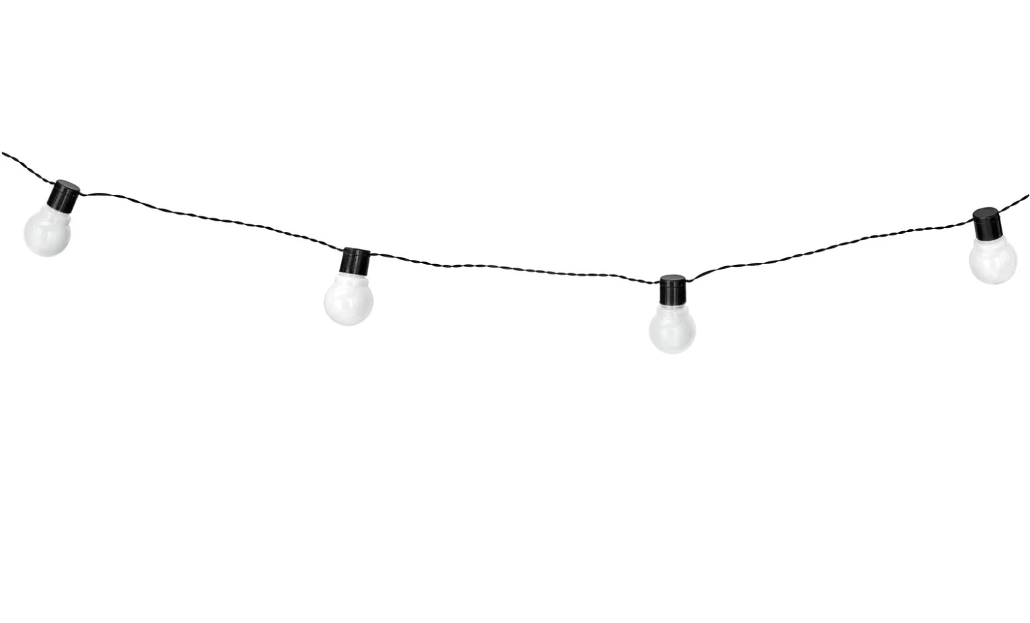 - Total length 6m , cable length to first bulb 2.2m , lit length 3.8m , bulb spacing 20cm.