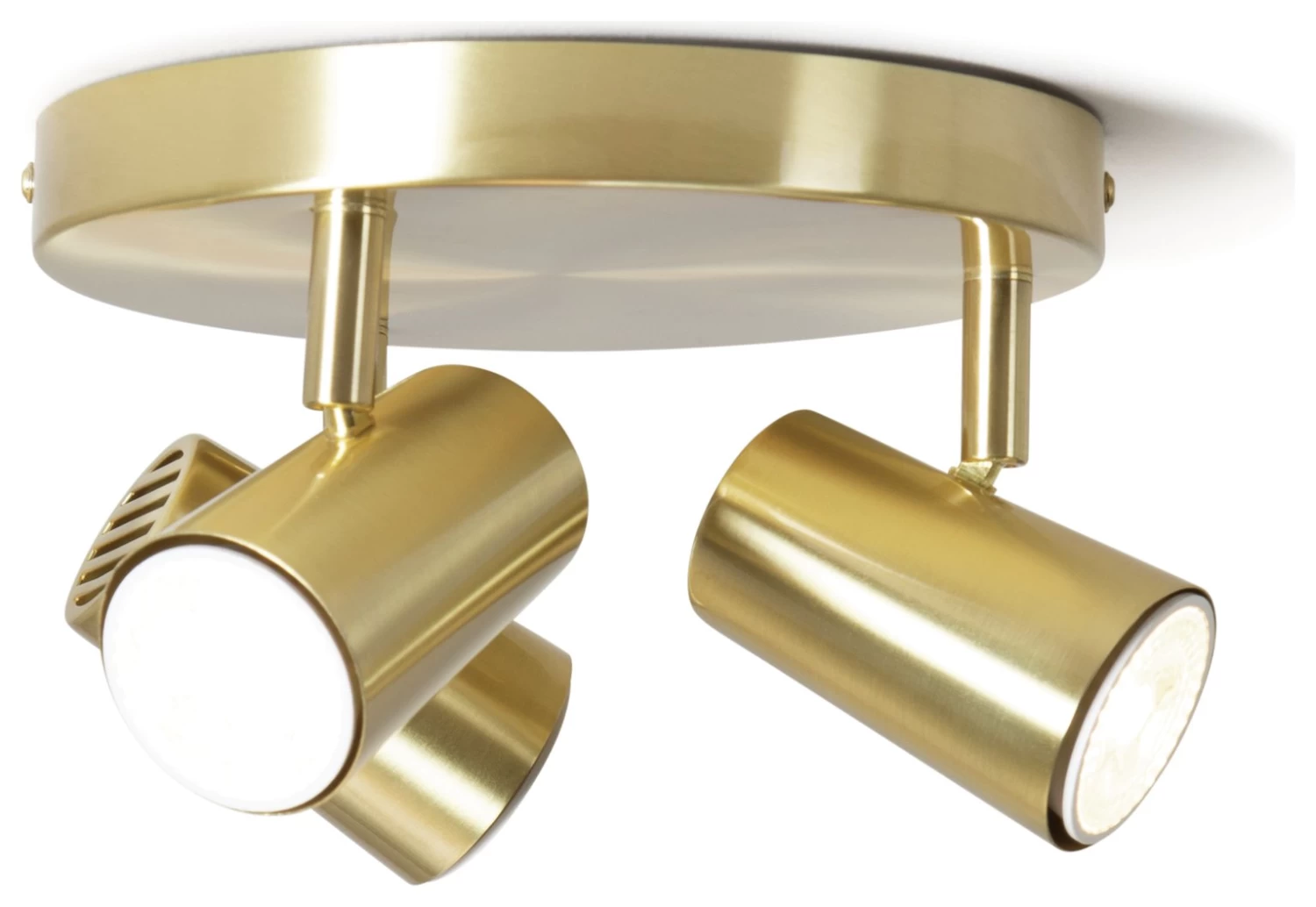 Ready for the spotlight? This trio is ready to add a touch of glamour to your home. Mounted on a flush-to-ceiling sleek satin brass plate, it’s a chic choice for the lounge, hallway, or bedroom. With three adjustable heads, you can focus a pool of light on a prized print or set an intimate mood for dining. Geometric vents are a cool retro touch too. Shine on.