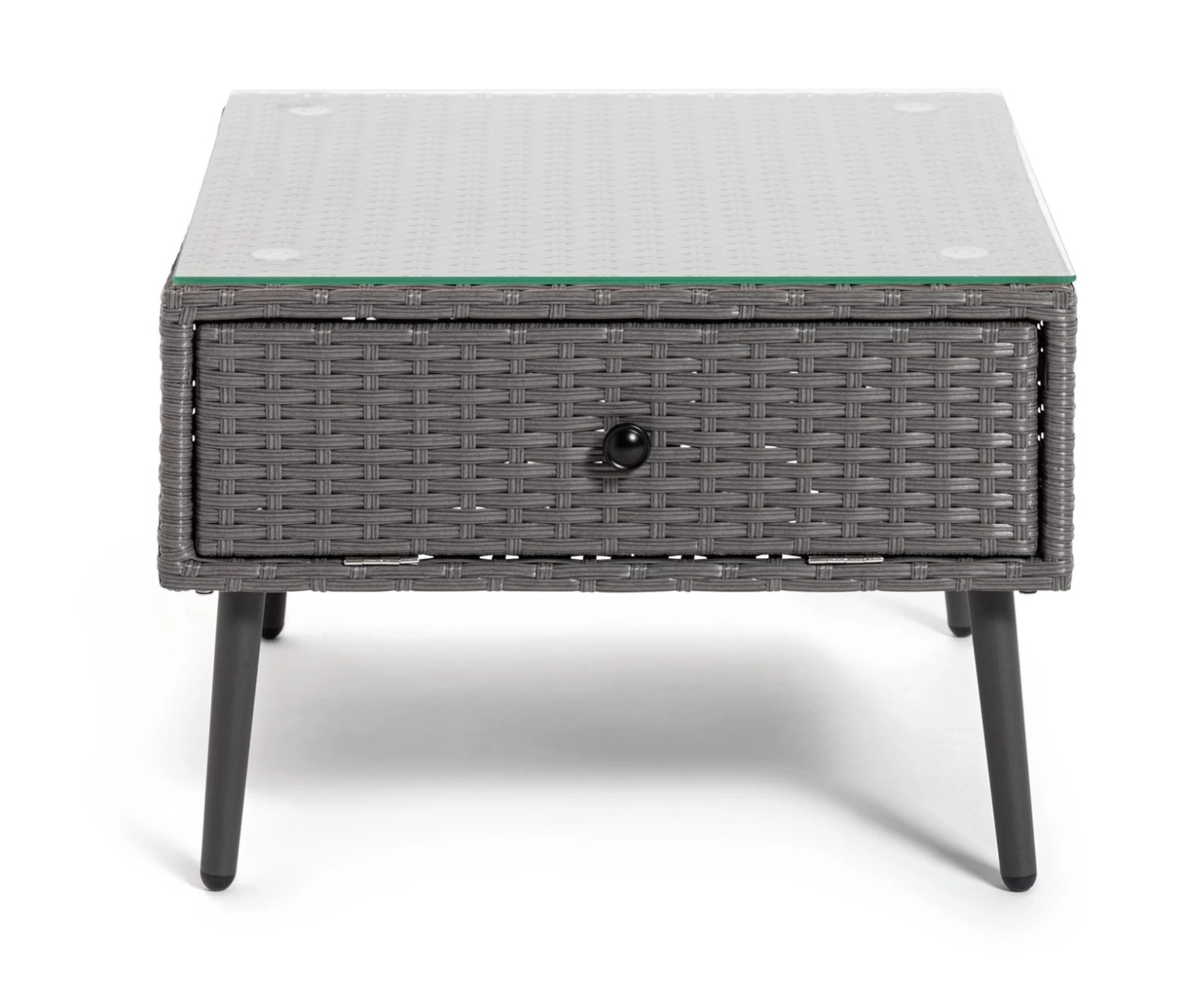 Bring the inside out with this Corner Sofa Recliner. There’s nothing quite as luxurious as a sofa outside. It turns your garden into a lounge, so you sit longer and relax even more. And this stylish number hit all the design trends, stylish grey, rattan and even a dose of mid-century with its cute splayed legs. Two side stools mean there’s somewhere for everyone and the glass coffee table comes with a drawer for all your garden party essentials.
