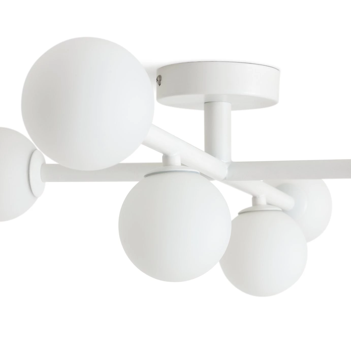 Say hello to the Scandi chandelier. This stunning ceiling light, in sprayed white steel, with 6 spherical glass shades will add instant mid-century style to your look. Lovely in your living room it’s also beautiful in a bathroom. With an IP rating of 44, it’s glowing globes are steam and moisture resistant. A flat-to-ceiling gallery and shorter drop also makes this chic ceiling lamp the ideal statement light for lower room heights. Brilliant.