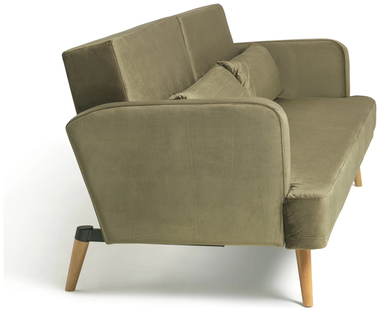 Clic clac, lie me flat. From designer sofa to overnight double bed in seconds. Amazing. Upholstered in flame sage velvet, I am also a contemporary sofa to yearn for. With a soft but firm foam fibre-wrapped seat and 2 gorgeous foam filled bolster cushions, you’ll definitely be sitting comfortably. Spread out and sprawl, put your feet up, click the remote on, and let’s try a night in together.