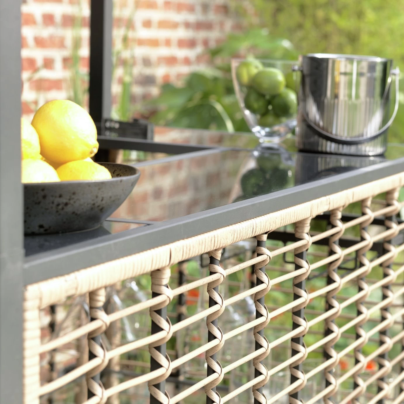 - Set made from steel and rattan effect.