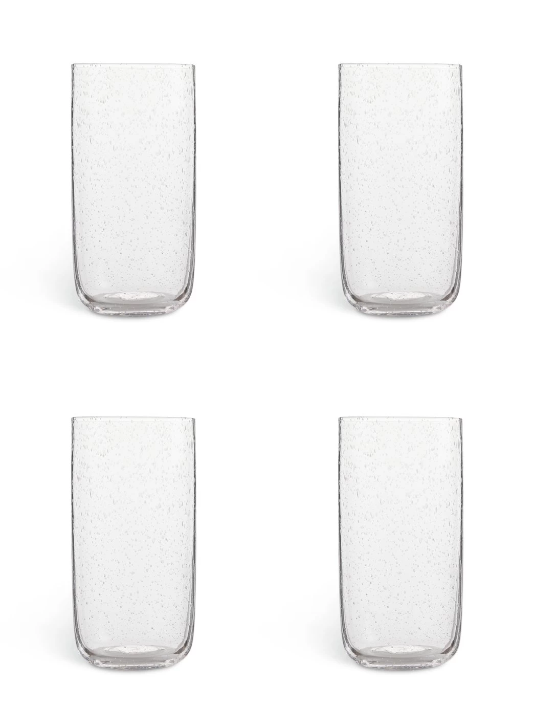 Bubbles, anyone? Smooth and simple with a designer twist, our set of 4 tall glasses are delightfully elegant. Curved, clear glass crafted with a bubble effect bring a modern feel to the table. Water, juice or a cheeky G&T? With this versatile set, it’s totally up to you. Hydrate, the handsome way.