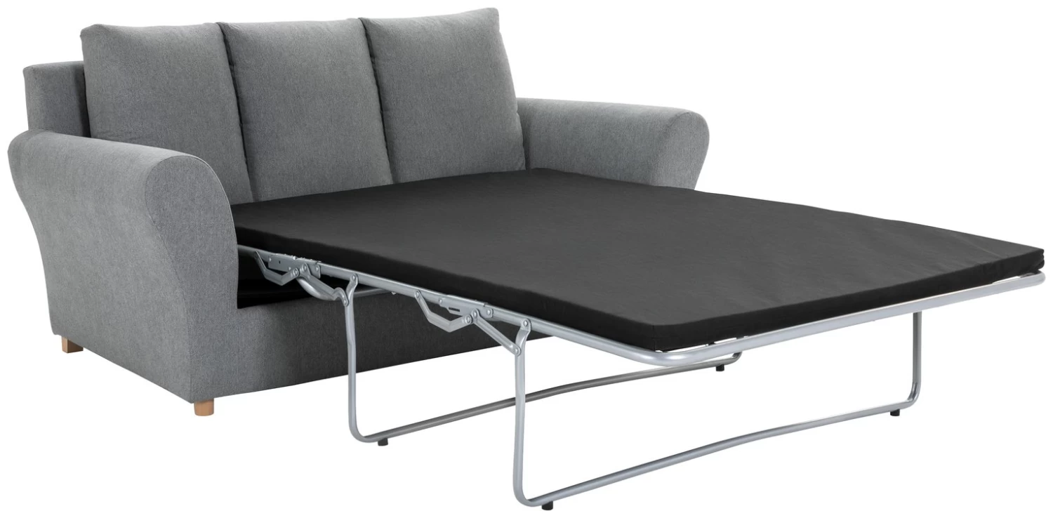 A plump perch with dual purpose. Upholstered in chic grey fabric, the Carrie sofa bed is all about classic good looks and practical living. Boasting generous curved wide arms and thick square back cushions, it’s mid-century meets modern. Guests over? No problem. It easily unfolds into a cute double bed. Cosy on up to Carrie.
