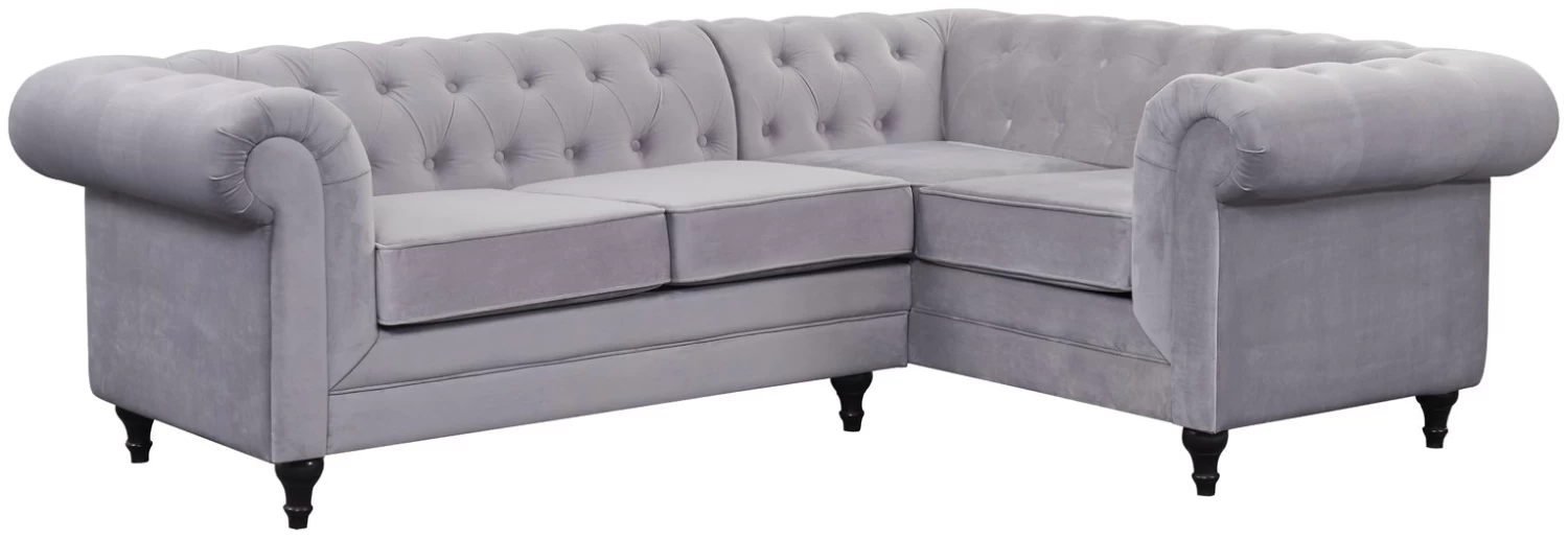 Timelessly tasteful. Beautifully upholstered in luxurious grey velvet, our Chesterfield left corner sofa is full of classic character. It has everything you’d expect from an iconic design. Sumptuous deep buttoning, scroll arms and turned wooden feet. Plump pocket-sprung cushions and piped edges add to its quality credentials. And it comes with modern corner hugging convenience. How good is that?