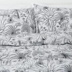 Dreaming of distant lands. Our Jungle bedlinens feature a black and white print of jungle plants for a quirky, chic look. 100% cotton and a 180-thread count makes them cosy to sink down into at the end of the day. Jungle fits with any decor style from natural to monochrome to Scandi. And this great value single set comes with 1 pillowcase and a duvet cover.