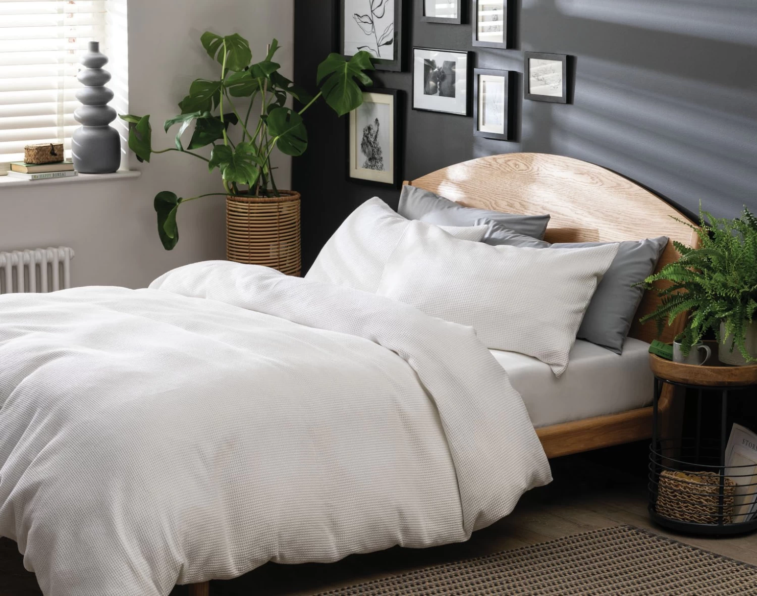 Wonderfully waffly. Create a relaxing bedroom space with our welcoming waffle weave bedding. It’s just the job for some dedicated lounging. Made in 100% cotton for a light, easy-care option, this tactile duvet adds a soft layer of sophistication to your room. Fully reversible, choose smooth or textured side up, to suit your mood. Great for good nights and marvellous mornings.