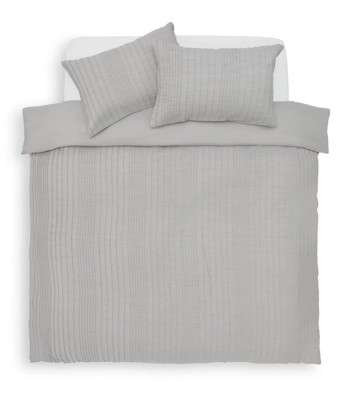 Get a fresh feel for our grey crinkle design duvet set. Twice as smart, with a tactile textured topside and a smooth, snuggly soft underside. So, good looks and comfort. That’s a combo worth getting into bed with.