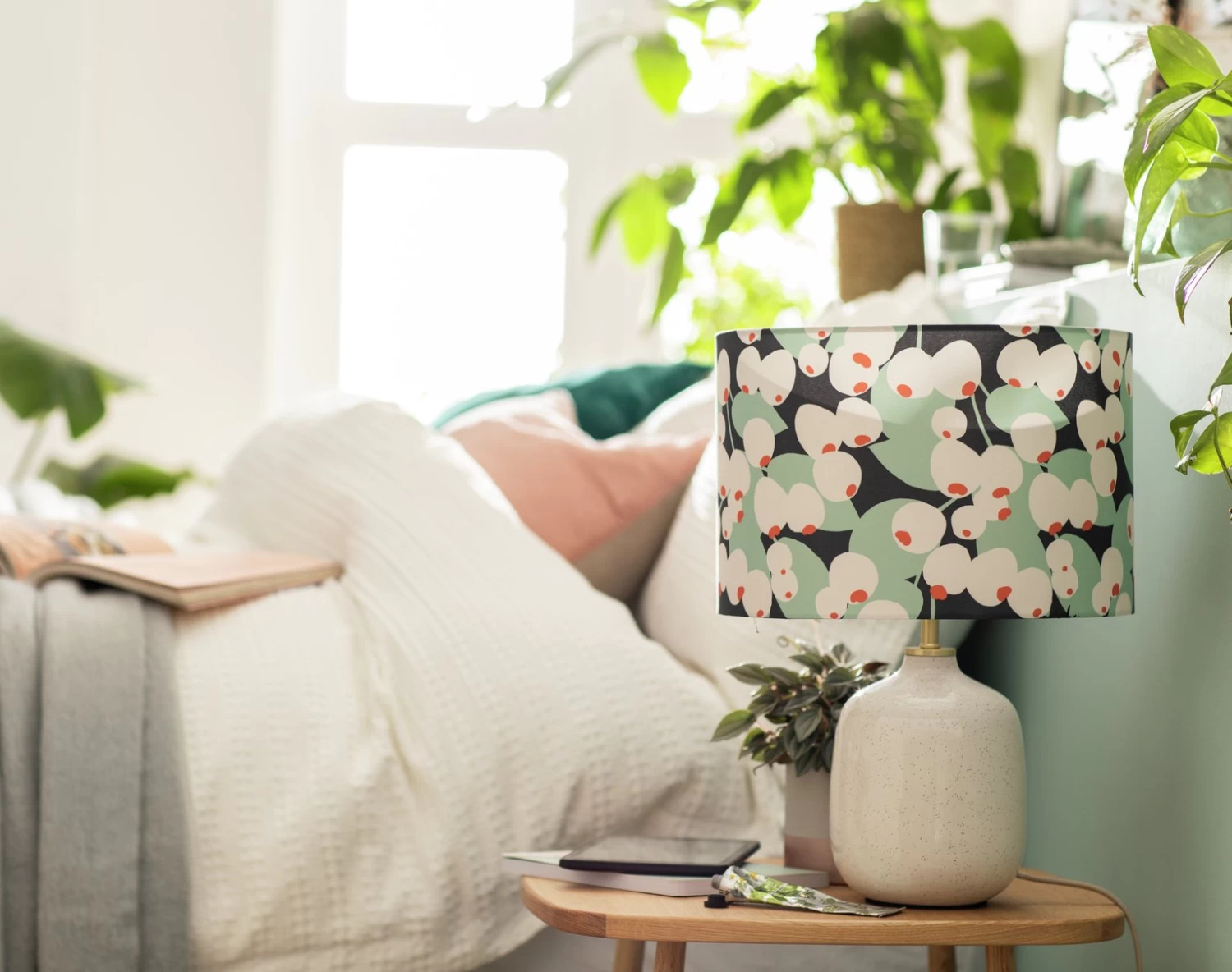 At one with nature. In true Scandi style, Cruz takes its inspiration from the outside world. Graphic berries and leaves are bold without being overbearing. It’s a modern statement shade that won’t steal focus. Hang it from the ceiling or pair with your bedside lamp. Effortlessly organic.