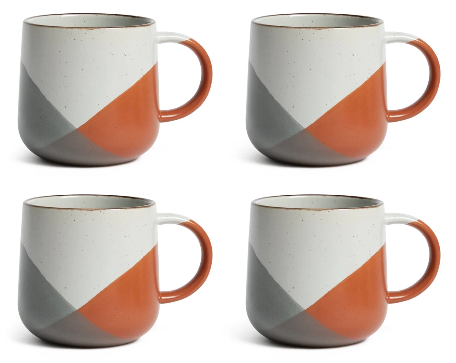 Enjoy using this set of 4 mellow mugs. With a double dipped effect across the base and handle, they flaunt an earthy two-tone geo pattern. Very contemporary. Made from speckled stoneware, they’re a smart, strong addition to any collection. And they take a good mug shot, don’t you think?