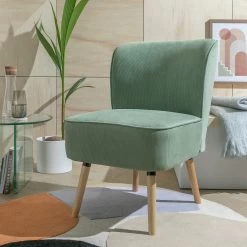 Cool, contemporary and compact. Lovely little Eppy is known for its good looks and high comfort. Accent piece or reading chair, it’s a winner in any room. The deep cushioned seat and curvy padded back are upholstered in a mint green fabric. Piping detail and splayed 2-tone wooden legs add to its appeal. Can’t decide where to show off Eppy? It’s light enough to move around, so share the love.