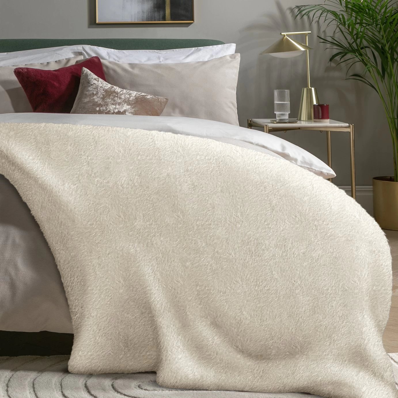 Calm and cosy. Our faux fur throw in serene cream adds an extra level of gorgeousness to a luxe or contemporary decor. So silky soft, you’ll dream of staying wrapped up in it always. Drape over your shoulders for some snuggly relaxing or spread on your bed for lots of glamour. Made of 100% polyester, so when it needs a little spruce up, pop it in the washing machine. It’ll emerge fluffier than ever. Movie night cuddles just moved up a notch.