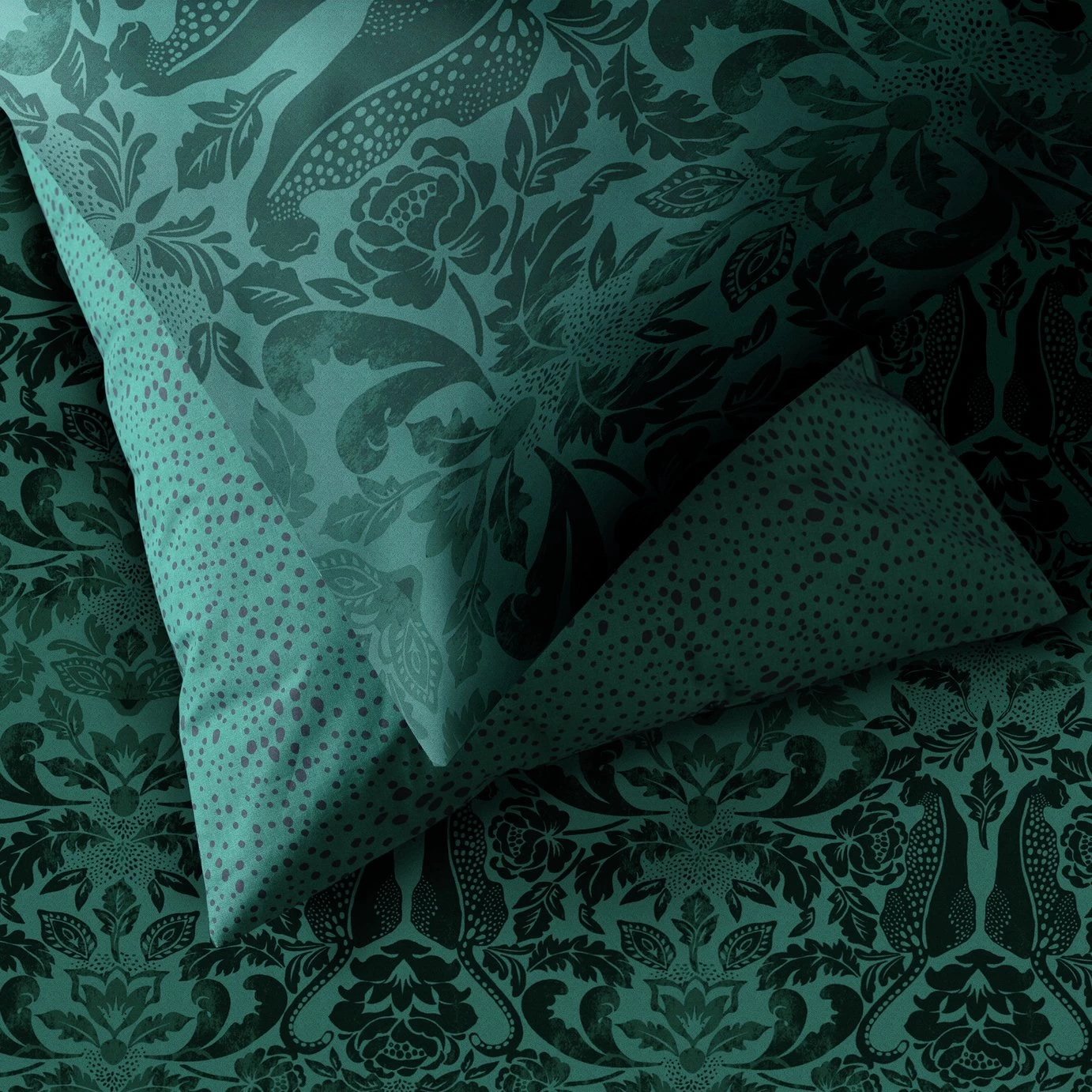 A jewel of a bedding set. This emerald duvet set brings a bold richness to a bedroom. The damask pattern adds to its luxe vintage vibe. Woven in polycotton, for a more comfortable night’s sleep. Goodnight, gorgeous.