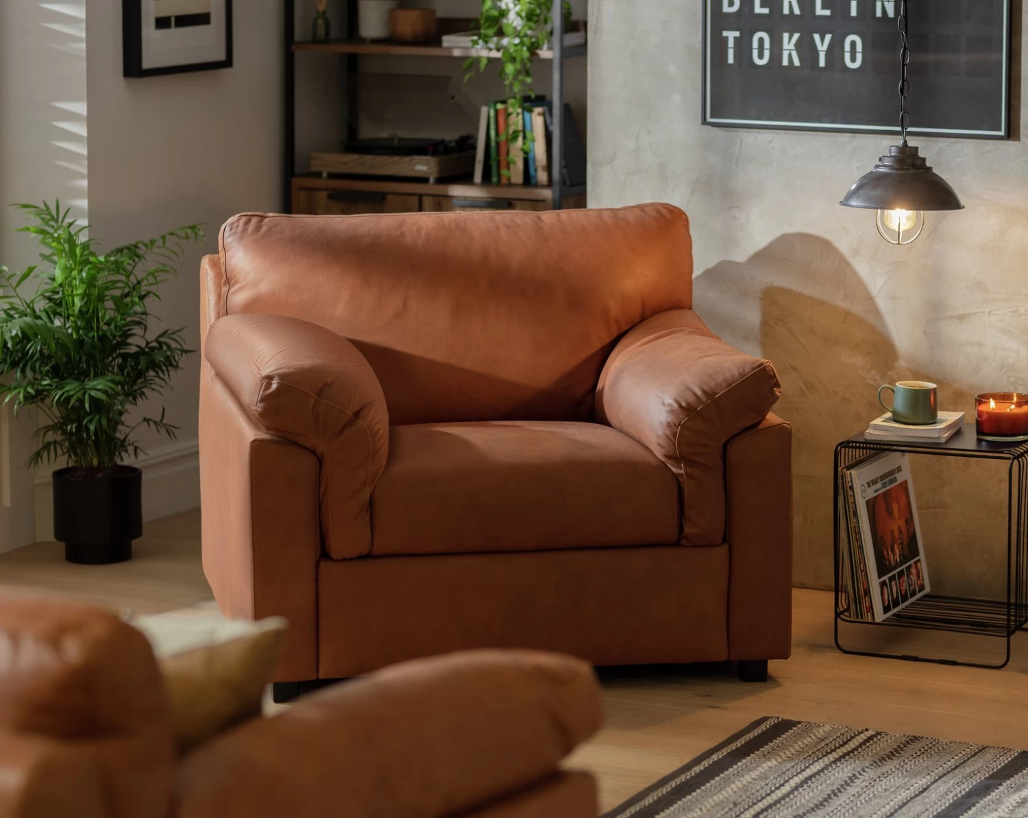 Fabulous Florence gives you the feel-good factor. Handcrafted from 100% genuine aniline leather, this contemporary armchair is luxe lounging. Sink into its pocket sprung seat and foam-filled, dacron wrapped cushion. Plush armrests and supportive backrest are designed to help you unwind. Movie marathon or curling up with a book? This comfy chair has your back.