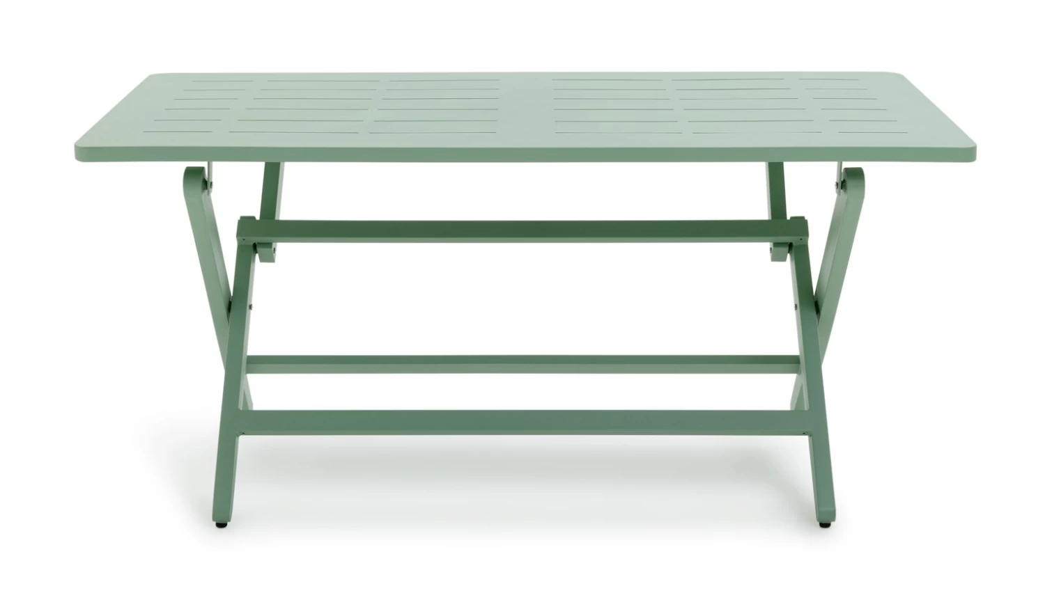 This outdoor dining set is twice as smart. Why? Because it’s foldable, making storage that much simpler and the slatted top and seats allow any rain to run away.