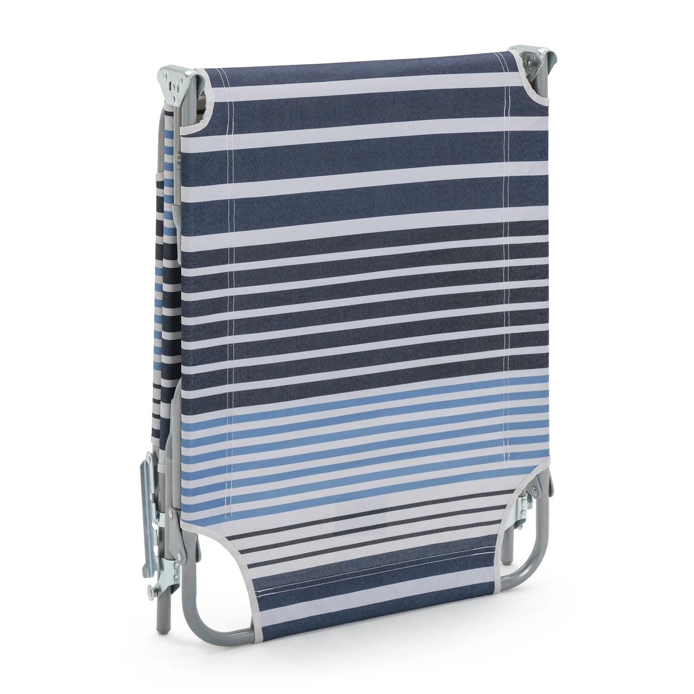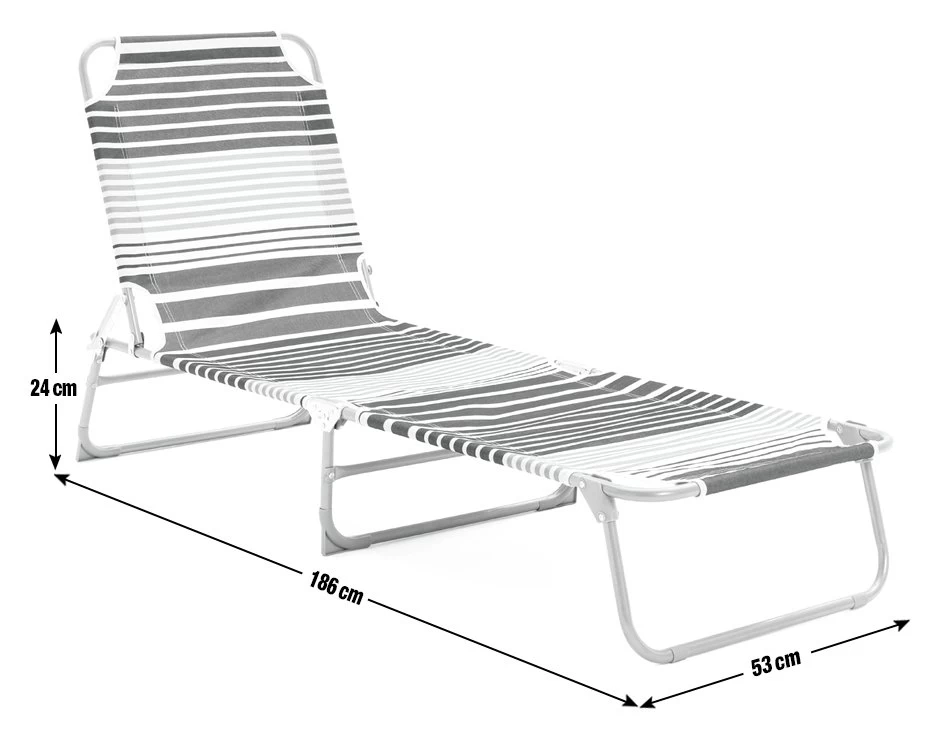 Lounge in luxury with our adjustable sun bed. Cool in striped blue and white fabric, it’ll bring a contemporary touch to your patio or garden. With 3 different recliner positions you can bask in those summer rays just the way you like. And with a foldable metal frame, it’s simple to store away when not in use. That’s some savvy, sun-soaked style.