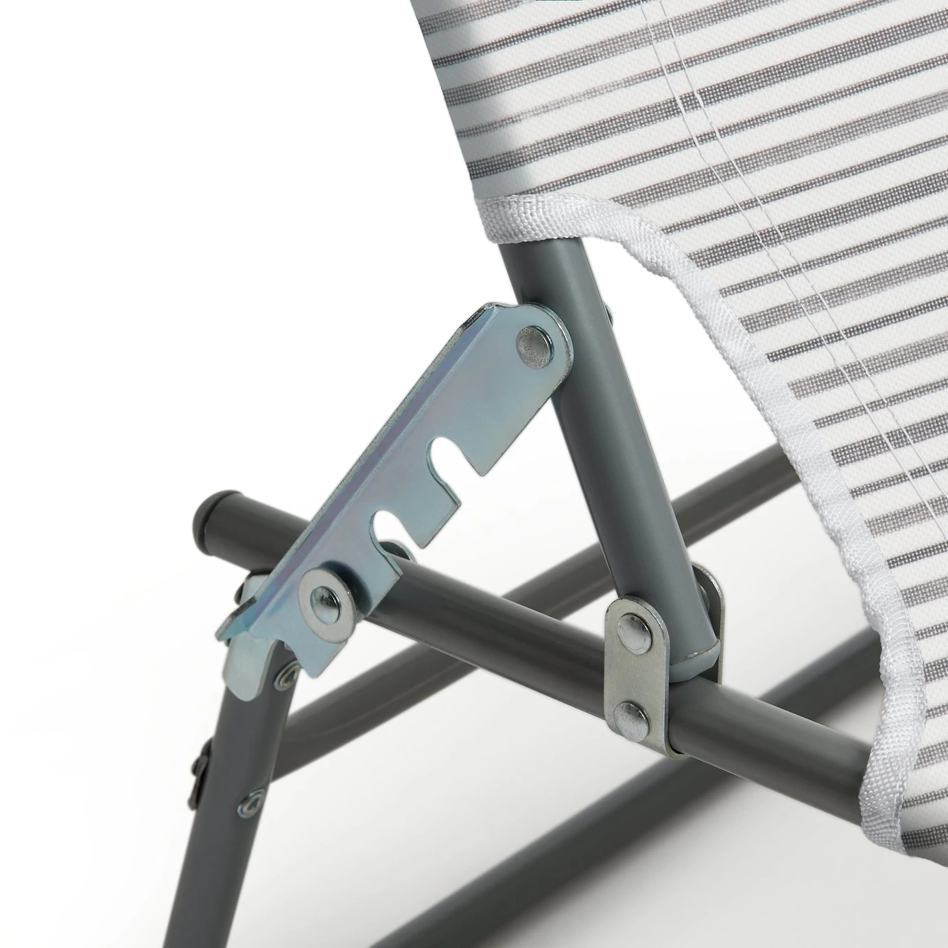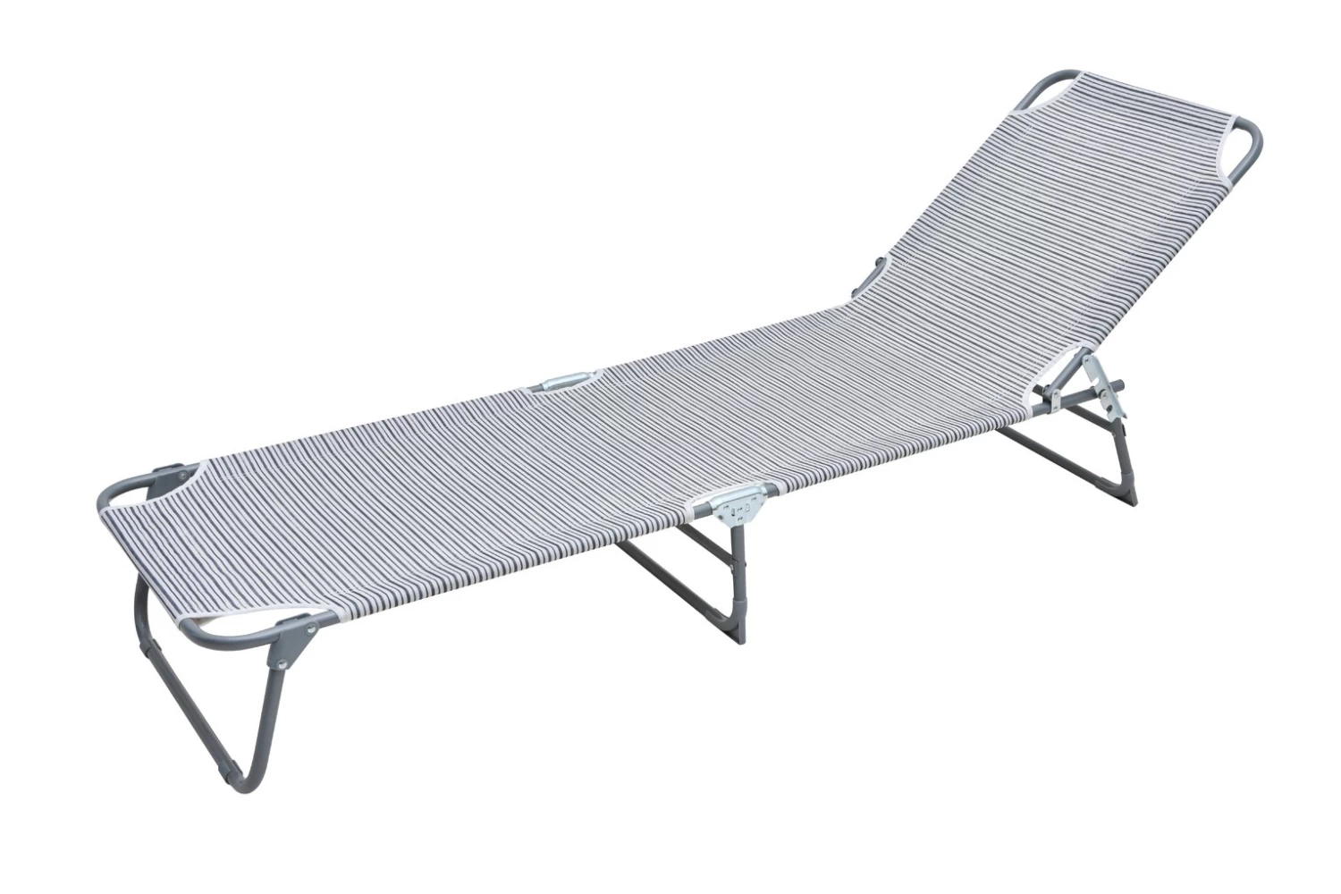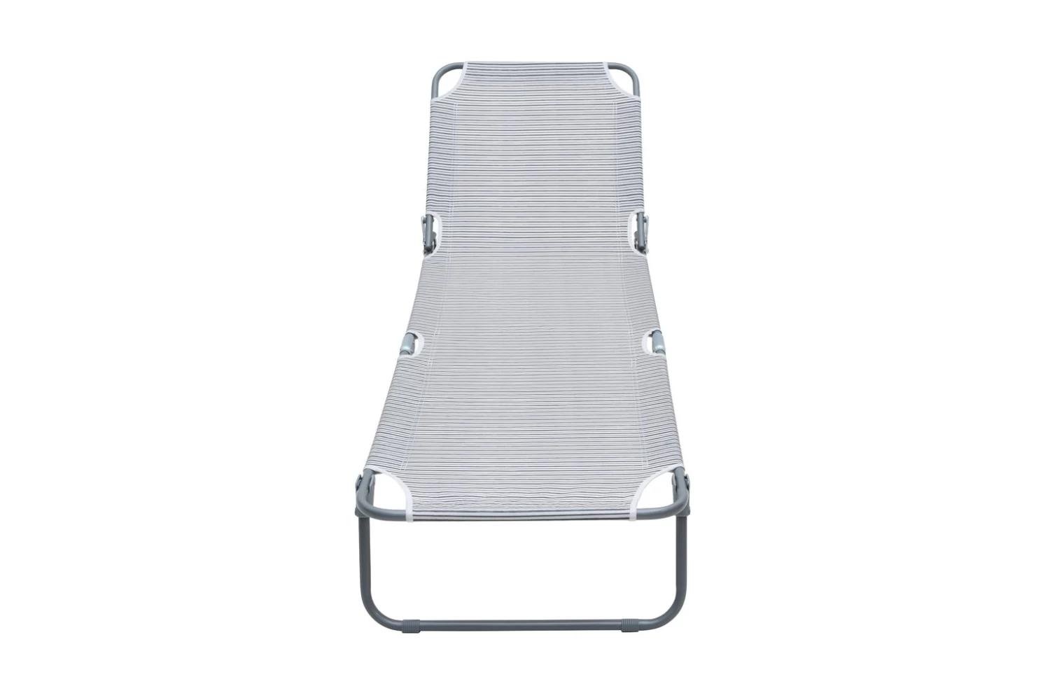 Hello Summer. Soak up the sun’s rays on our sun lounger, perfect for lazy days. With a choice of 3 recliner settings, just lie back and relax. Ideal for garden, beach or camping trips. The lightweight grey powder-coated frame folds in seconds and the fabric is wipe clean. So need to worry about any little spills. Be daring with our popular grey striped fabric. Add flip flops. Summer sorted.