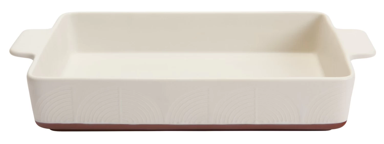 From lasagna to fruit crumbles, our large stoneware roaster is your go to dish. With a thick, white patterned glaze, natural terracotta base, and easy grip handles, it’s a real oven to table star.