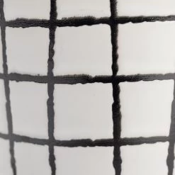 Modern monochrome mugs. These black and white stoneware mugs have standout style. Why? Because of the wax relief painted criss cross lines. In other words, the white area is glazed, the black grid design, unglazed. Very on-trend.
