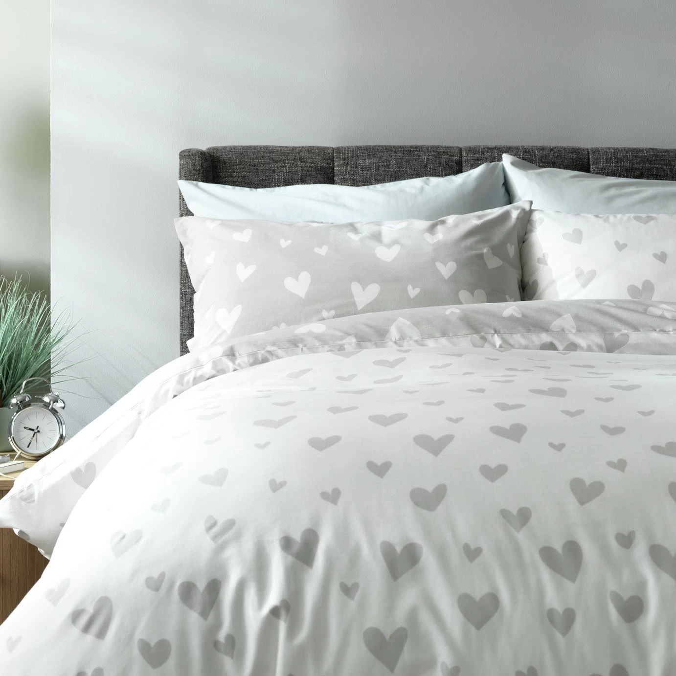 Big hearts or little hearts? You choose. The duvet cover is reversible so you can ring the changes.