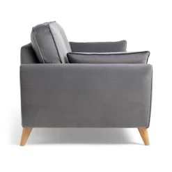 Retro chic. Upholstered in grey velvet, our 3-seater Iris sofa features mid-century modern touches. Check out the clean curves, button back removable cushions and splayed beech wood legs. Relax into the comfy removable seats, arrange the 2 scatter cushions and settle in.