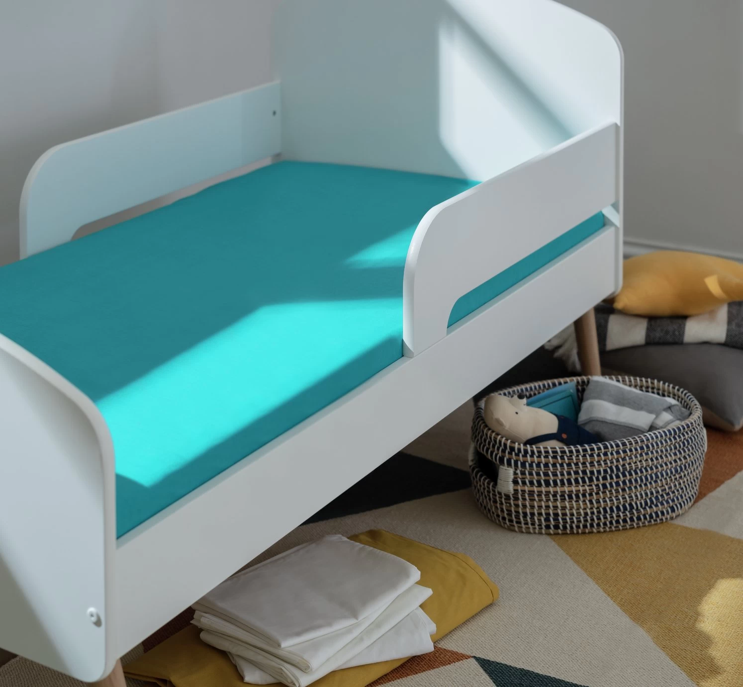 Add a playful pop of color to their bedtime routine. Our dynamic duo of fitted cot bed sheets gives you the option of a plain sheet or one patterned with cheerful building blocks. Made in 100% cotton and designed with elasticated edges for a super snug fit, they’re on and off in a jiffy. Handy for a speedy refresh. Easy care, this bright pair are always on hand for a snuggly, cuddly bedtime.