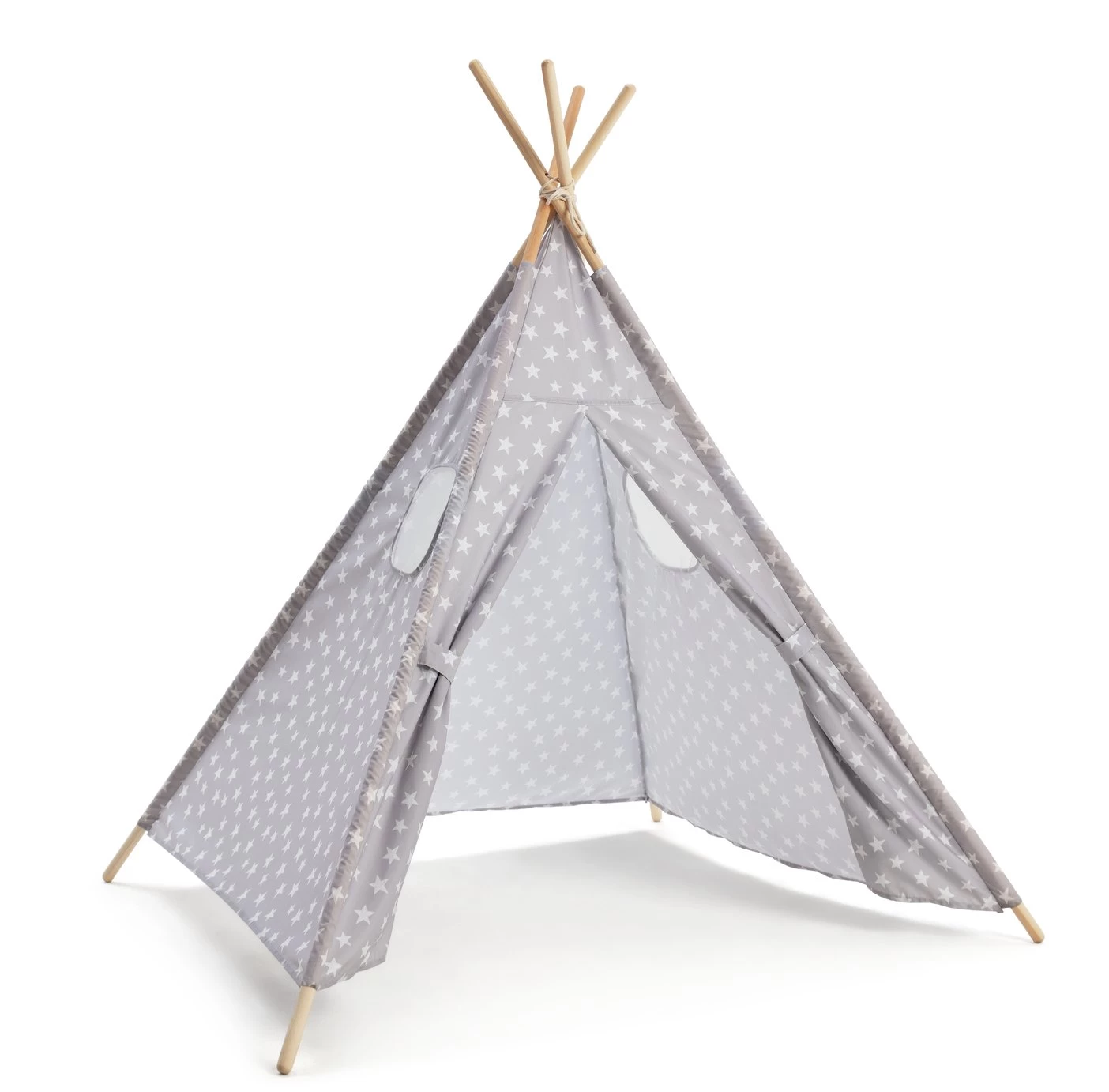 Camp out under the stars. Our cosmic teepee tent in grey and white makes a magical hideout for young explorers. Indoor cosy den or reading nook? Sorted. Pop it up in the garden for a shady spot, too. Let their imaginations run wild in a space that’s all their own. Easy to put up and pack down, simply tuck away the folding frame when playtime’s over. It’s a sparkling choice.