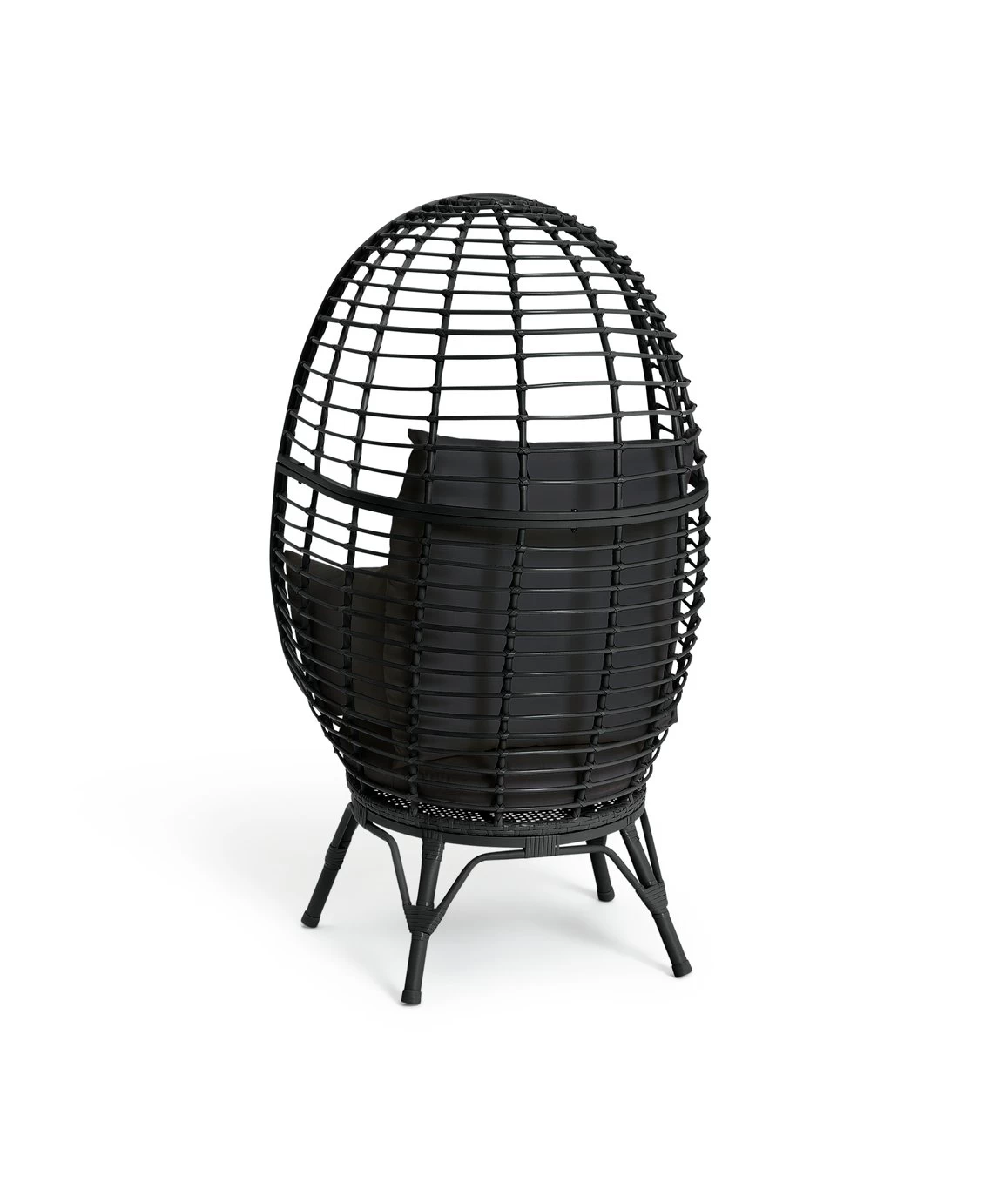 Get cosy with Kora. Our striking black egg-shaped pod is comfy and contemporary. Grab a cuppa and a book, cuddle up in this cocoon, in the garden or even inside, Kora will fits perfectly even in your lounge or bedroom. Crafted with a curved steel frame and handwoven rattan detail. Add a modern rustic touch to your patio, terrace or garden. And with 4 super soft dark grey cushions, you’ll always feel supported. Kora’s got your back.