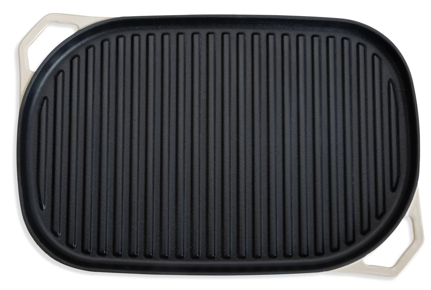 Get your sizzle on. Give your recipes those pro-cook looks with our large cast iron grill. Ideal for steaks, fish, seafood and veg. Good to go on any hob, the clever off-set double handles make moving from hob to table a breeze. The cream finish adds a lovely country kitchen feel. Now we’re cooking.