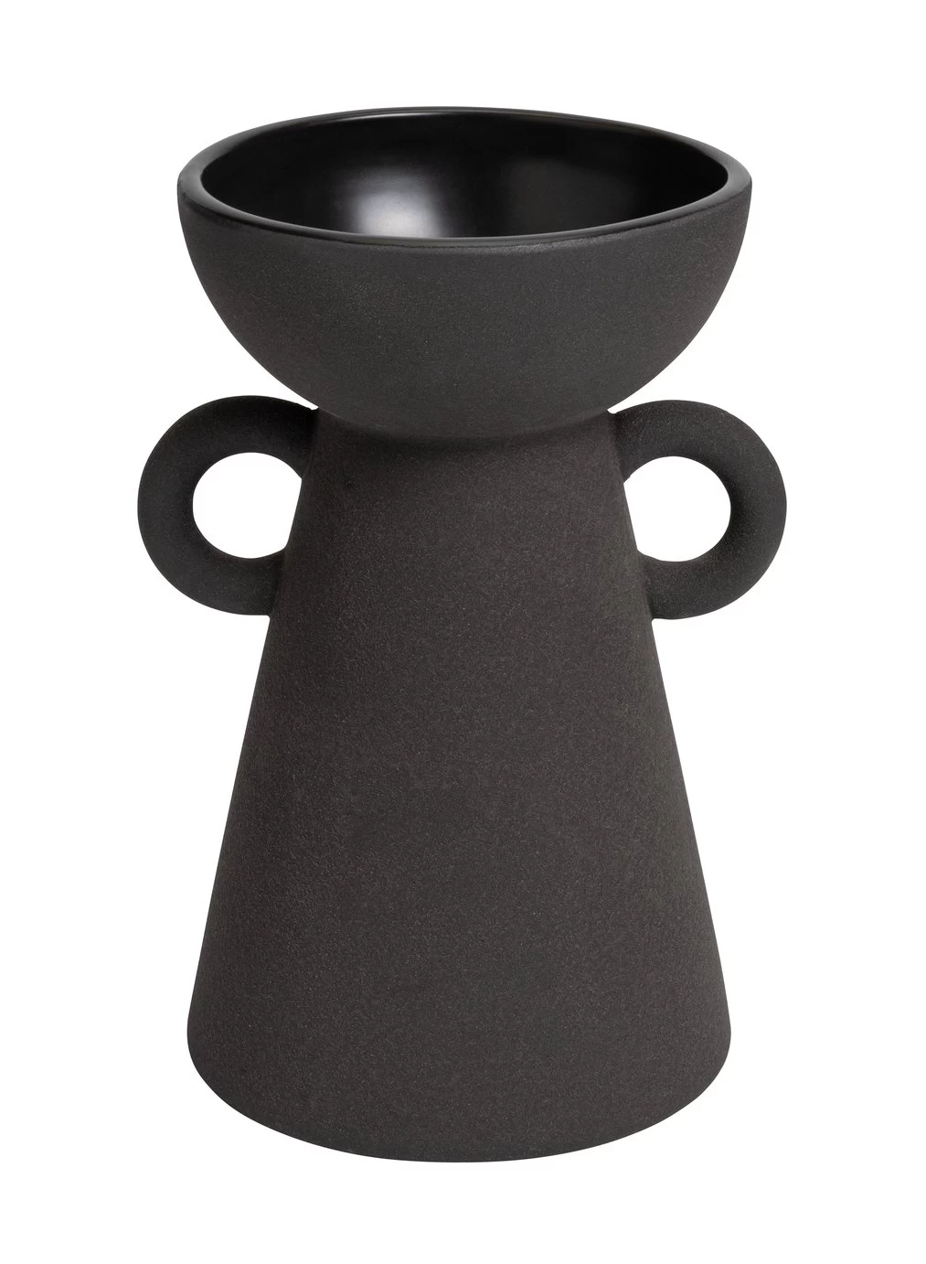 Looking for a distinctively different vase? You’ve found it. Embracing bold geometric shapes, the contemporary design of this matte black ceramic vase is simple and striking. The handles add to the design as well as making it easy to carry.