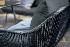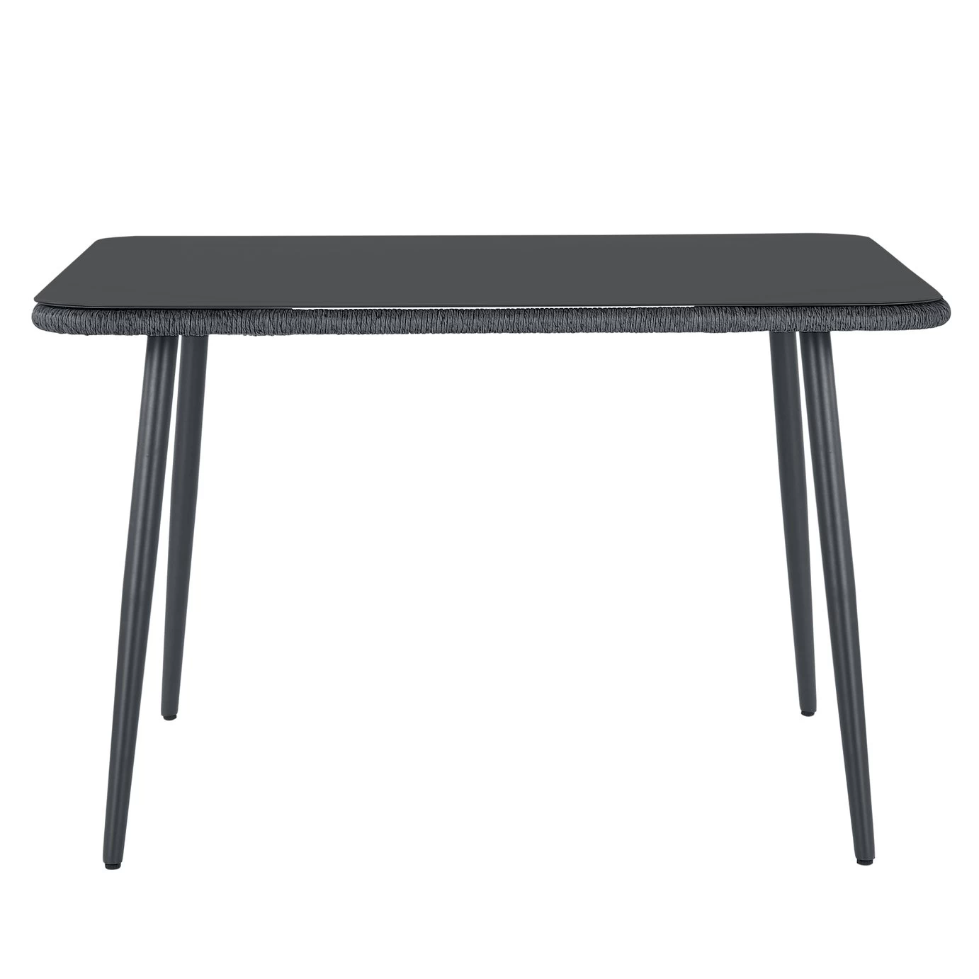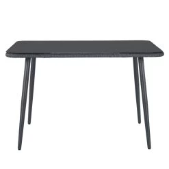 Get garden party ready with our 6-person dining set in jet black. Relax on the 6-seater corner sofa and pull up this pair of nifty stools. Lipped edges mean no slip-sliding around for seat pads. Serving up a feast? Gather round this smart, glass-topped table. Removable legs mean it’s simple to store, too. Rattan-effect rope and steel frames make each piece strong, lightweight and easy to move about. The 10 cool grey cushions add to the comfort factor. So, grab a glass of Pimms and settle in. Summer, we’re ready for you.