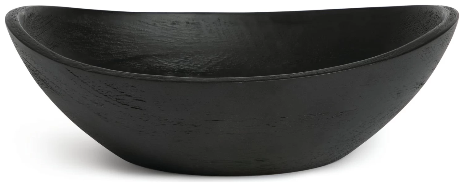 Presenting a darkly delicious serving bowl. Carved from mango wood this bowl has heaps of bold personality. The long gentle curves, lustrous shine and deep textured finish bring a contemporary wow to the dining table. Practical too. Its generous size and dark good looks are ideal for showing off everything from fruit to bar nibbles to mains. Dig in.