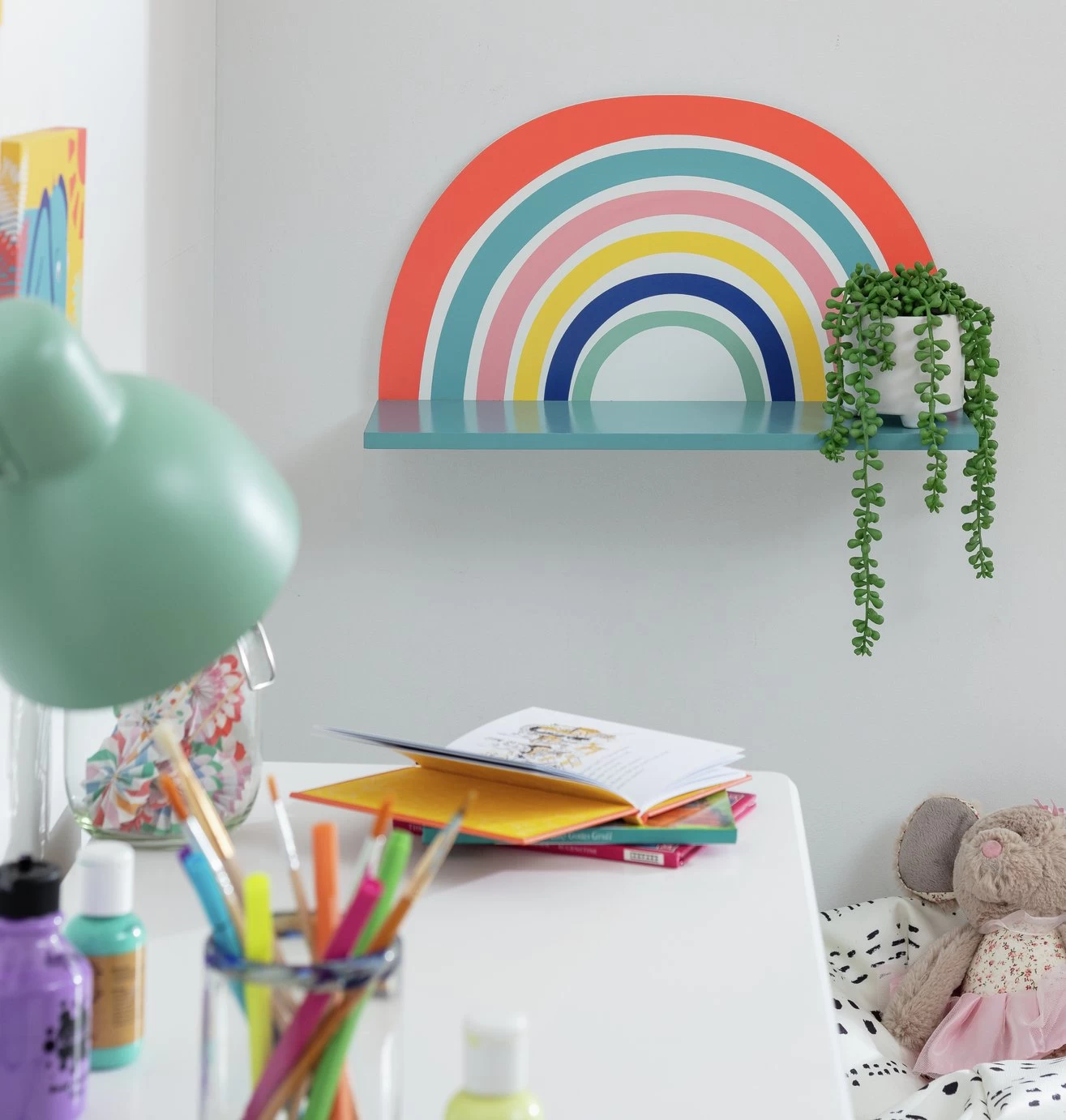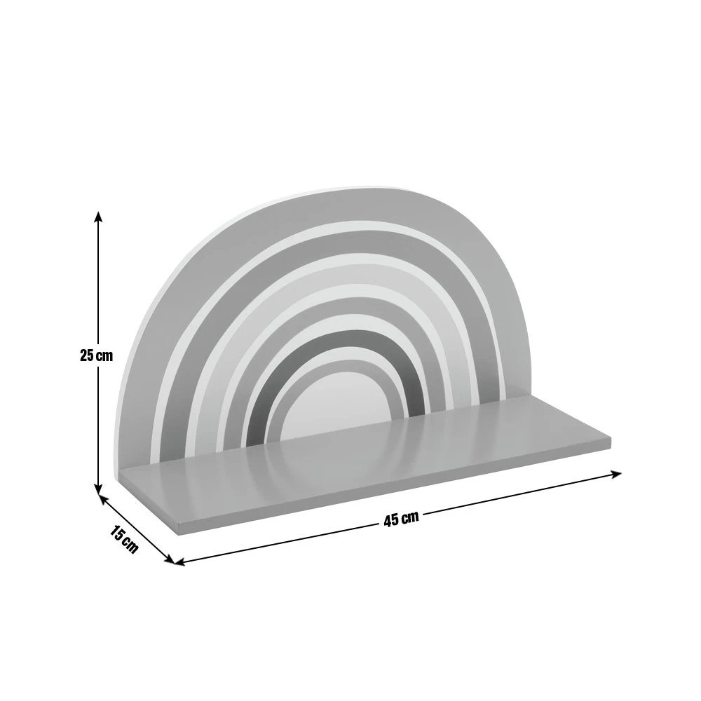 Over the rainbow. Put a smile on your child’s face with our colourful rainbow wall shelf. Hang at child-friendly height where they can keep their favourite toys or books. Made from wood and painted in a lovely gloss finish, it’s perfect for bedroom or playroom.