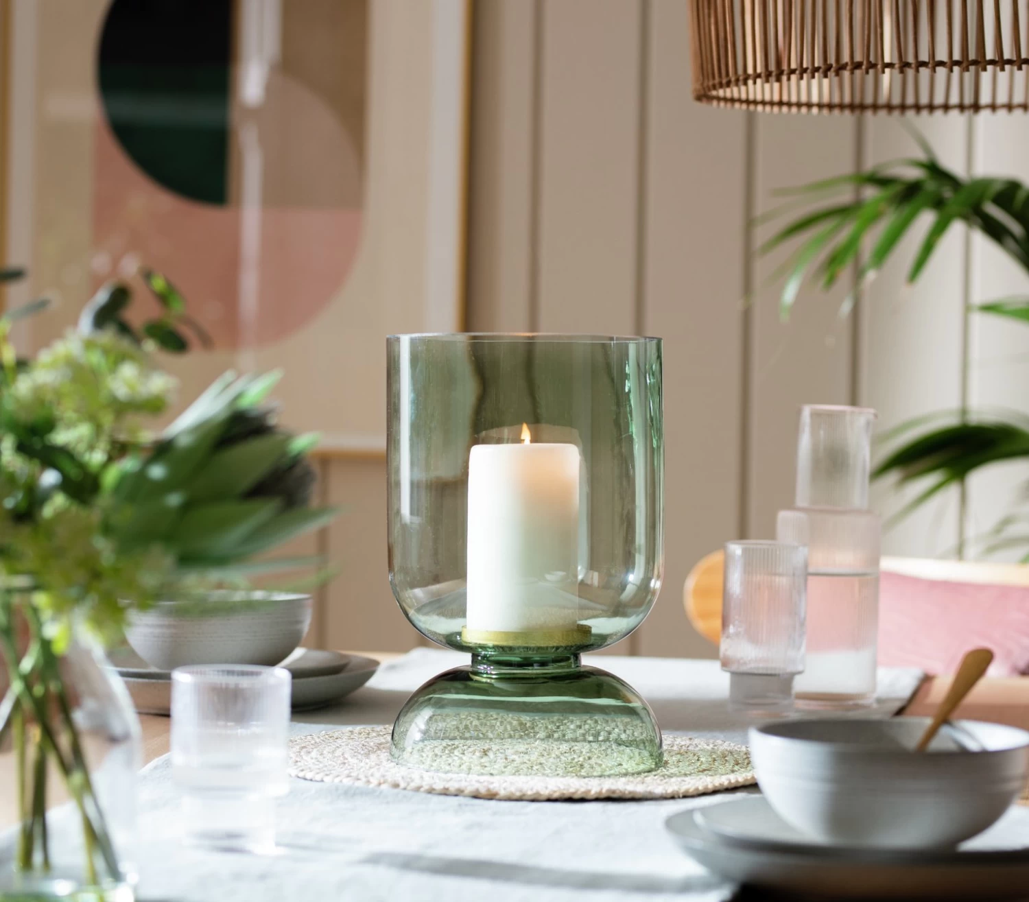 Looking for a pared-back lamp? This hurricane lantern is everything you need. Made from glass it has an elegant, curved design. Pop a pillar candle into the holder and you’re ready to light up any occasion.