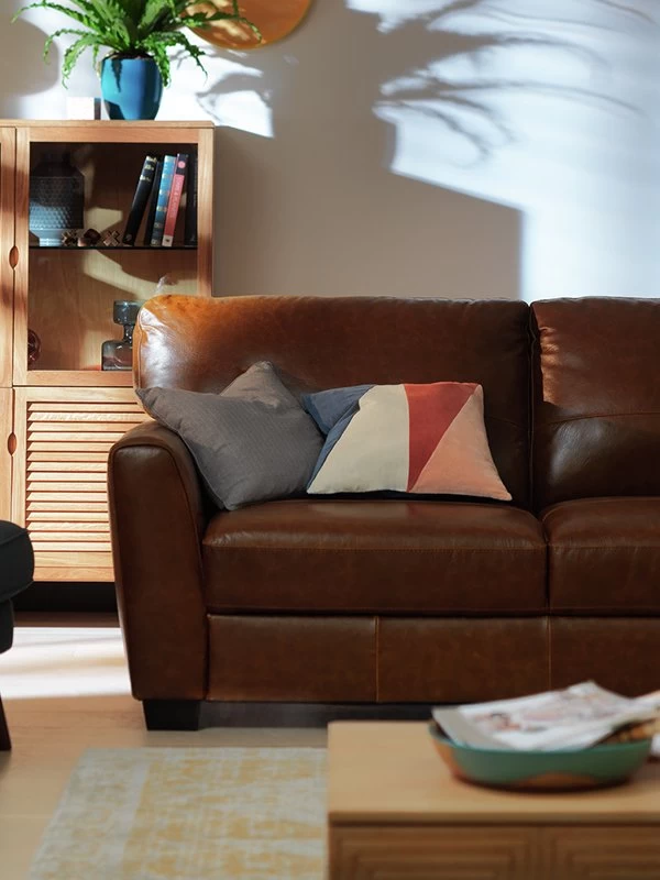 Flop back. Feet up. Our Milford 3-seater sofa is designed for those who appreciate laid-back living in an ultra-stylish way. Crafted in beautiful Italian tan-coloured leather and raised on wooden legs, you’ll be relaxed and curled up in no time at all. The fixed seat cushion is pocket-sprung, and foam filled for maximum comfort. And the back cushion has a soft fibre filling – minimal plumping required. It feels so good to be home!