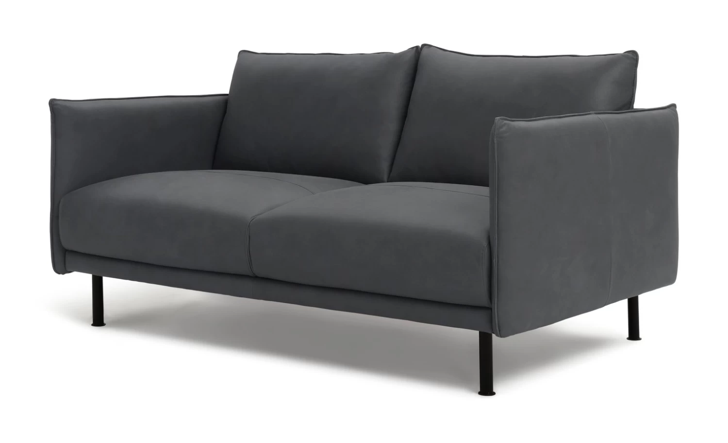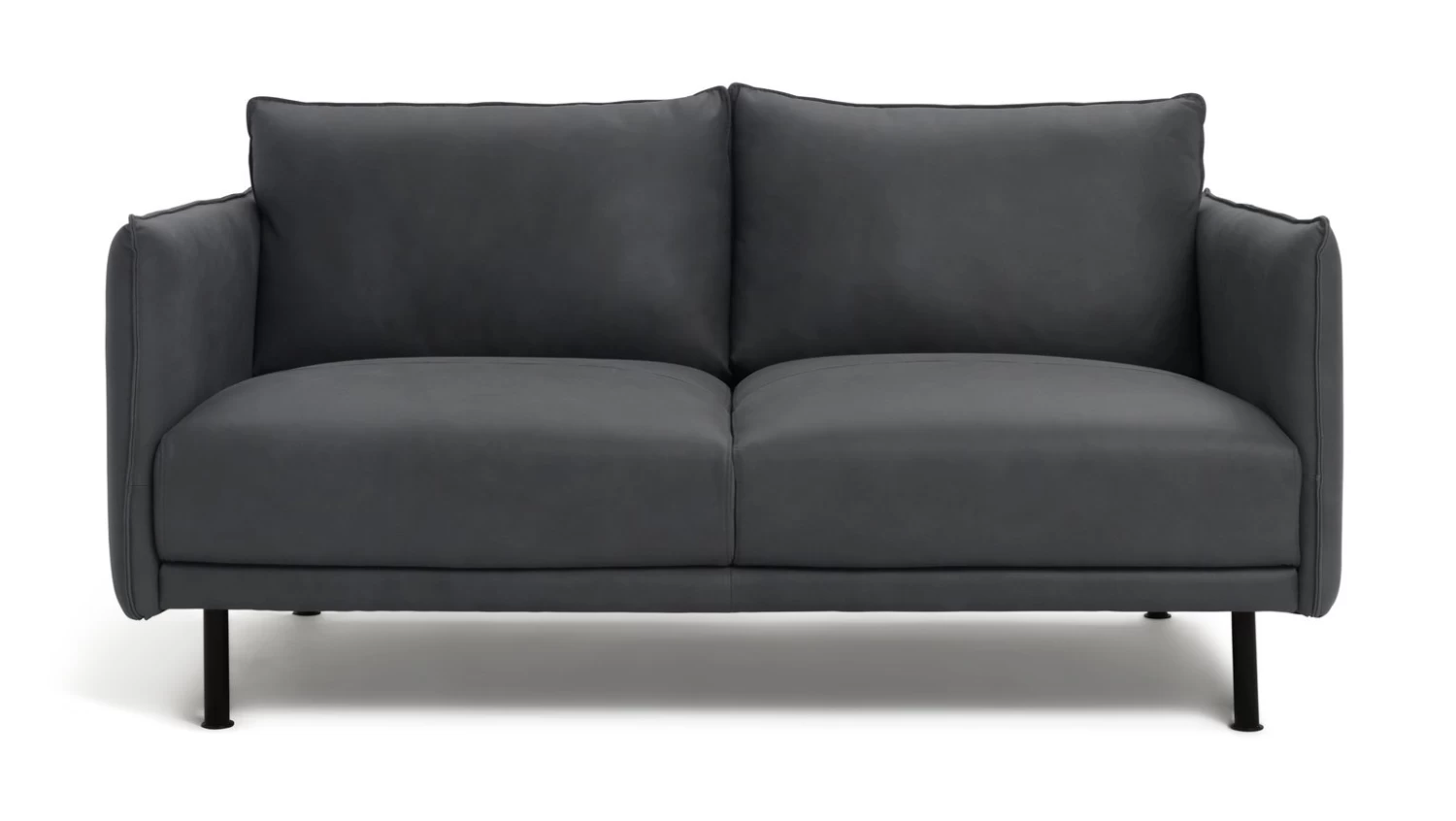 Big on comfort and style. Handcrafted from 100% genuine aniline leather, our Moore 2-seater grey sofa displays a minimal, contemporary silhouette. Deep comfy removable cushions, plump fixed seating and stitched detailing all add to the high-end design. Slim metal legs complete the picture. A perfect place to sit back and relax. Moore please.