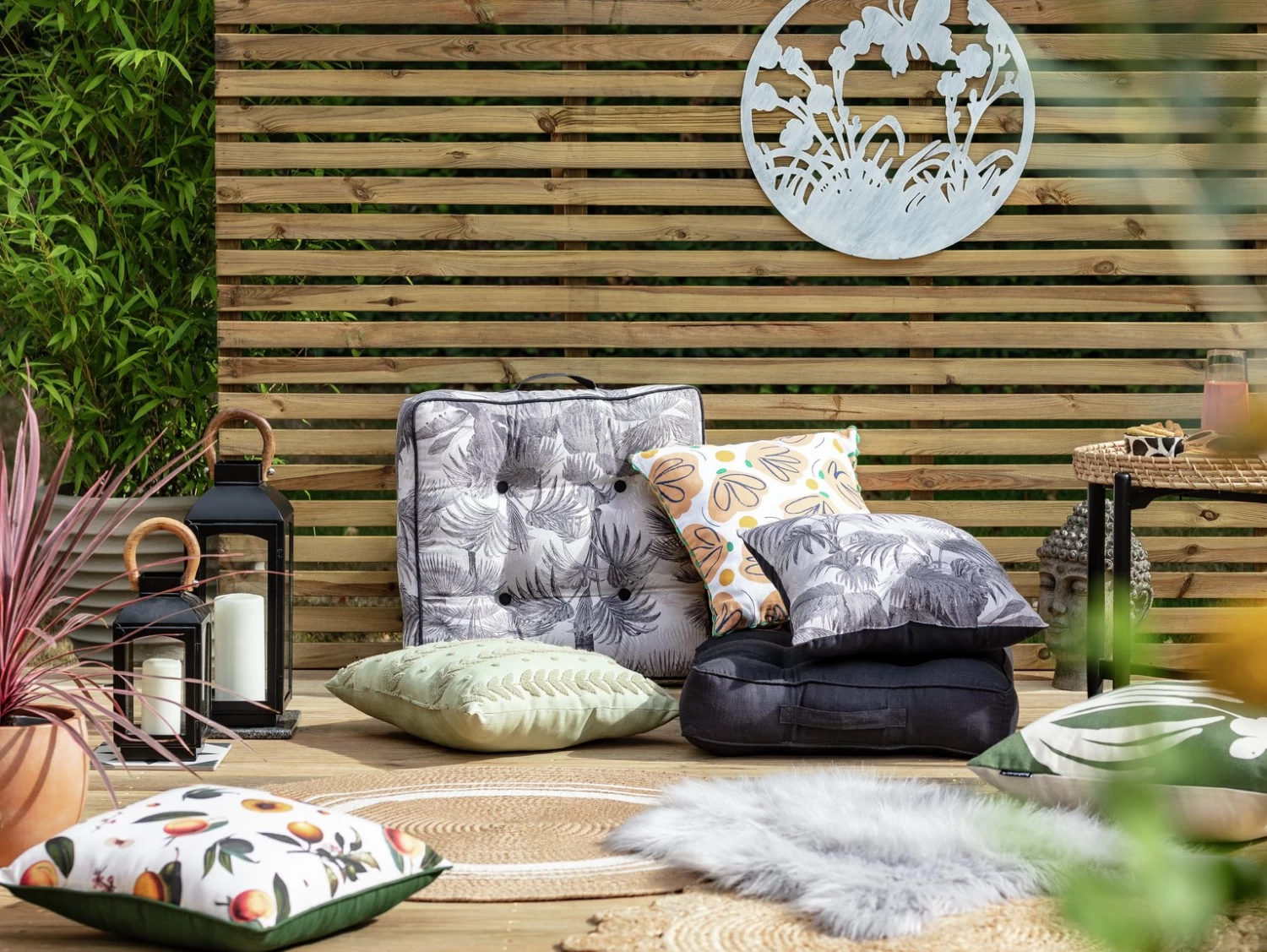 Our hugely comfortable cotton covered, palm print floor cushion can be used inside or outside. Water resistant, padded and plump with button detailing and carry handles, it’s a seat you can take anywhere. Picnic, garden, concert or simply an extra soft seat for the gang at home.