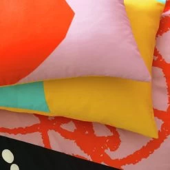 Cosy up in colour. Our multi-patterned duvet set brings a burst of life to your boudoir. Artistic squiggles, polka spots and stripes meet in this lively design. And when you want to calm it down, flip this reversible set for a simple yellow spread. Woven in lightweight polycotton, it’s soft and durable. Buttons make changing the sheets a doddle, too. Bright, bold and ready for bed.