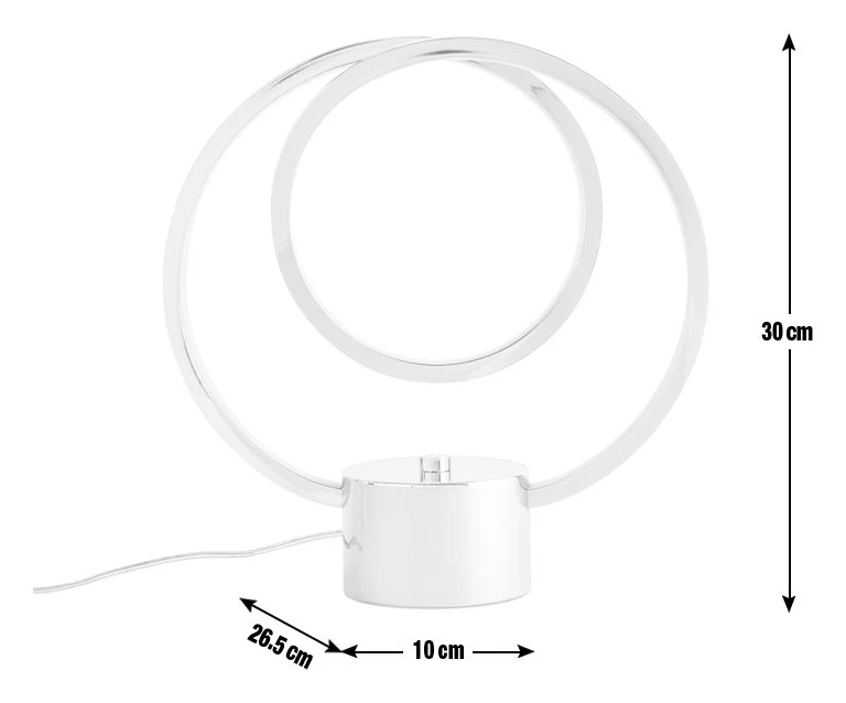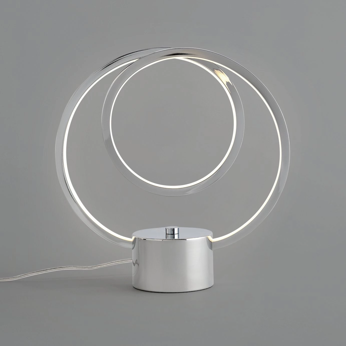 Make a brilliant statement. This showstopping table lamp looks stunning turned on or off. Brushed chrome curves reflect space and light to create a truly contemporary look. And the smooth integrated LED bulbs radiate circles of light to illuminate the room. Dynamic and different, just flick the switch for a gorgeous, glamorous glow.