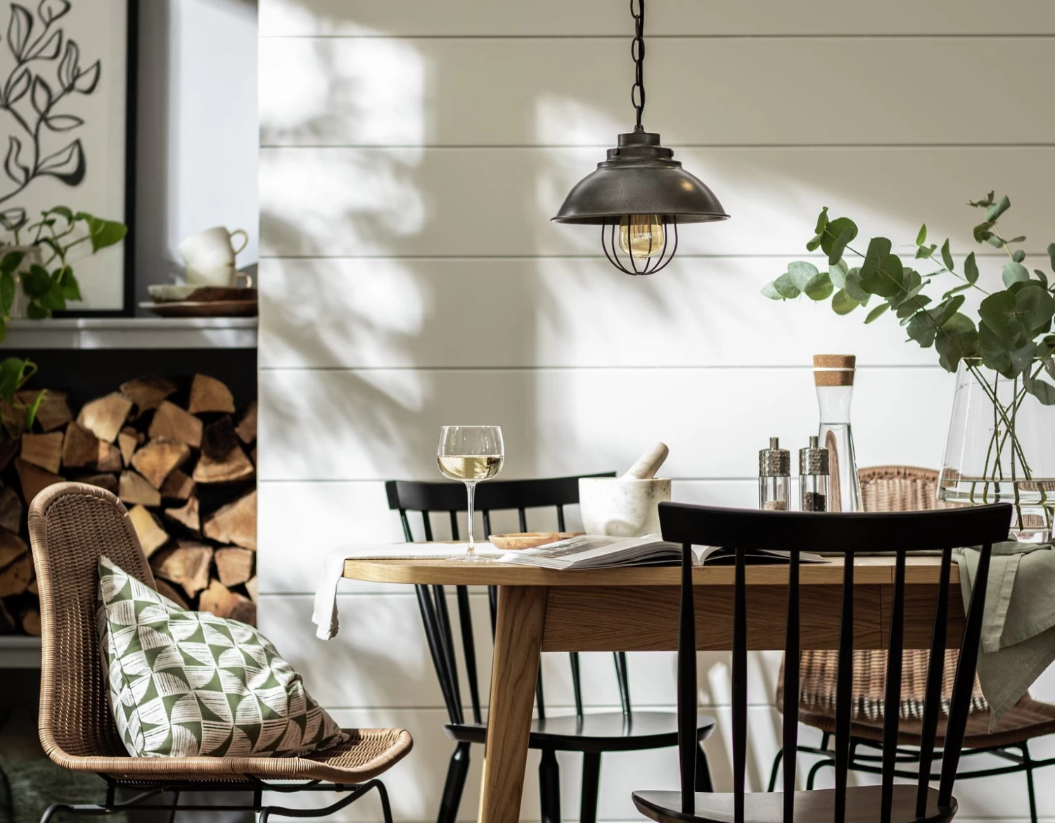 Industrial and edgy. Our caged black pendant rocks the semi-exposed bulb look. Protected by a metal grid, light streams from beneath the pewter shade. Casts dramatic shadows onto the surface below. Suspended on a metal chain it’s great for accenting a breakfast bar or kitchen table. Or create a focal point in your hallway. Moody and cool.