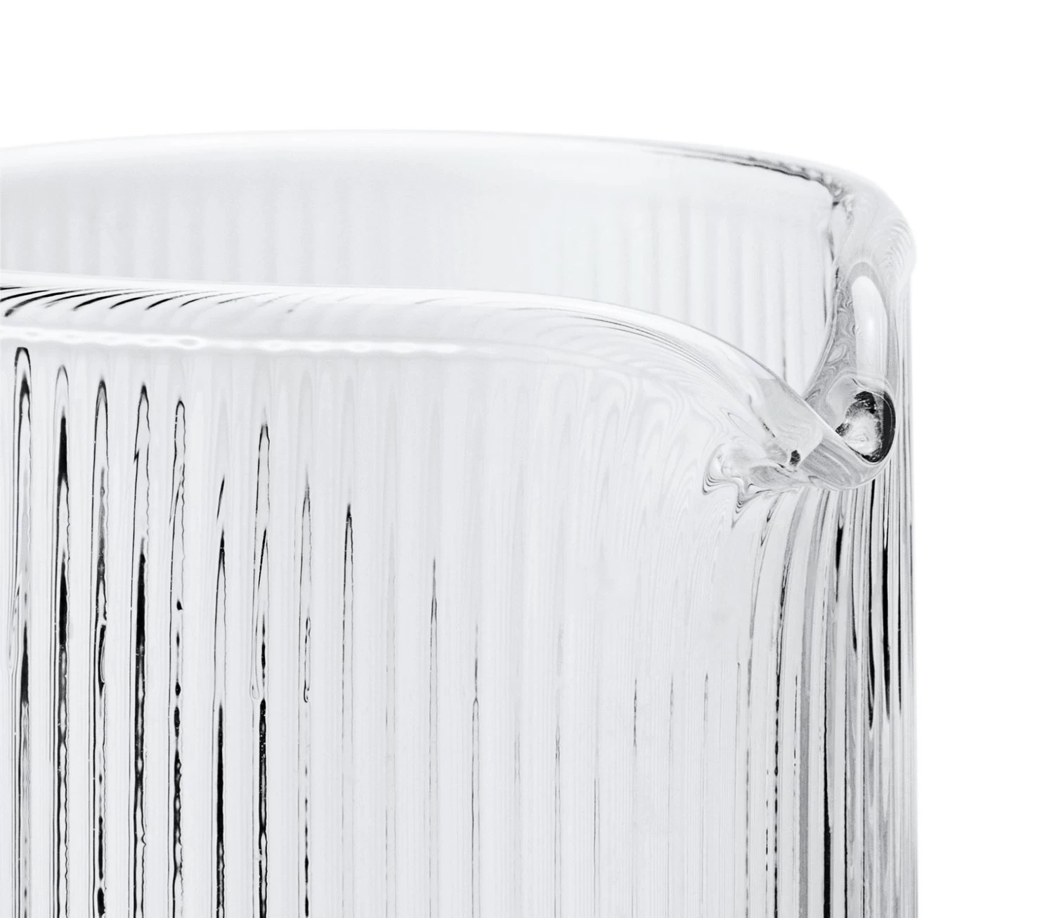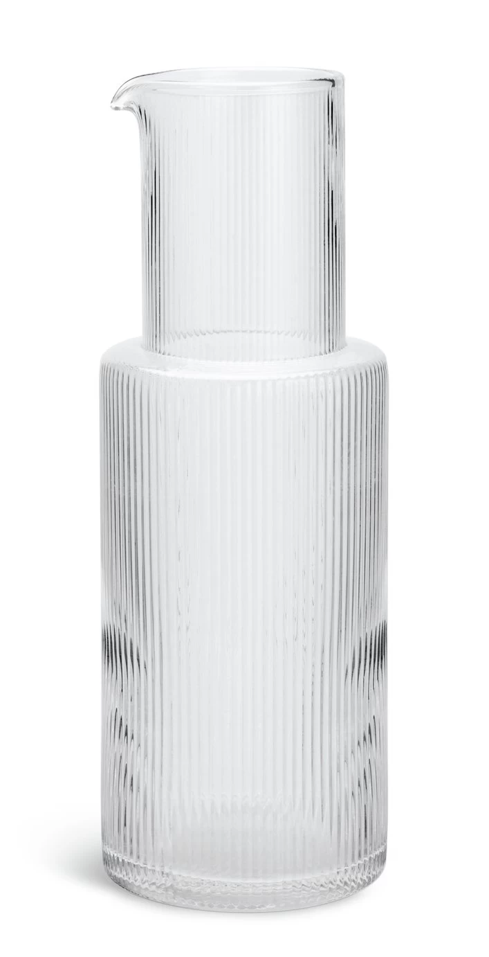 A distinctive hand-blown glass carafe, now that’s how to serve water in style. The simple linear design is emphasized by the ribbed texture. Idea for the dining table, or guest room, this is one cool carafe.