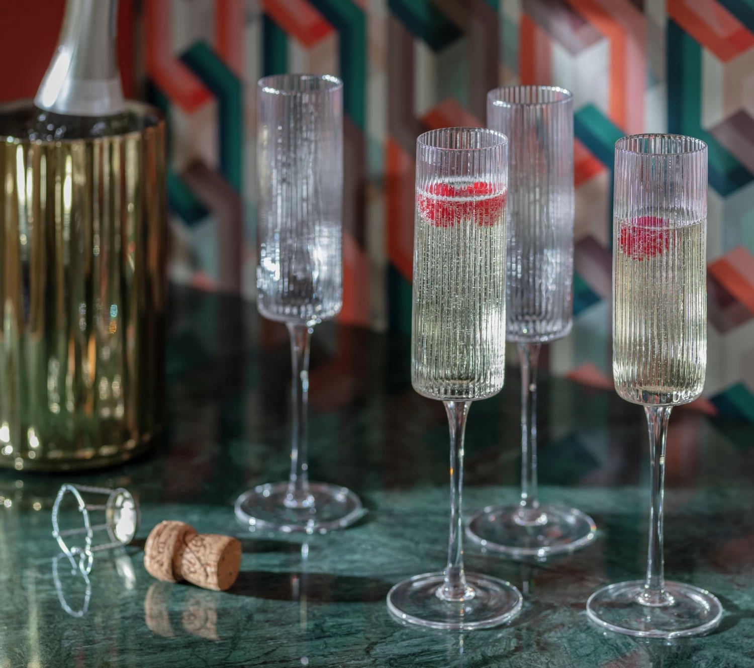 We’re booted and fluted so bring on the bubbly! A striking ribbed effect and slender stem makes this set of 4 champagne flutes a chic choice. Specially designed to keep your fizz, fizzing for longer. Pop that cork and let’s celebrate.