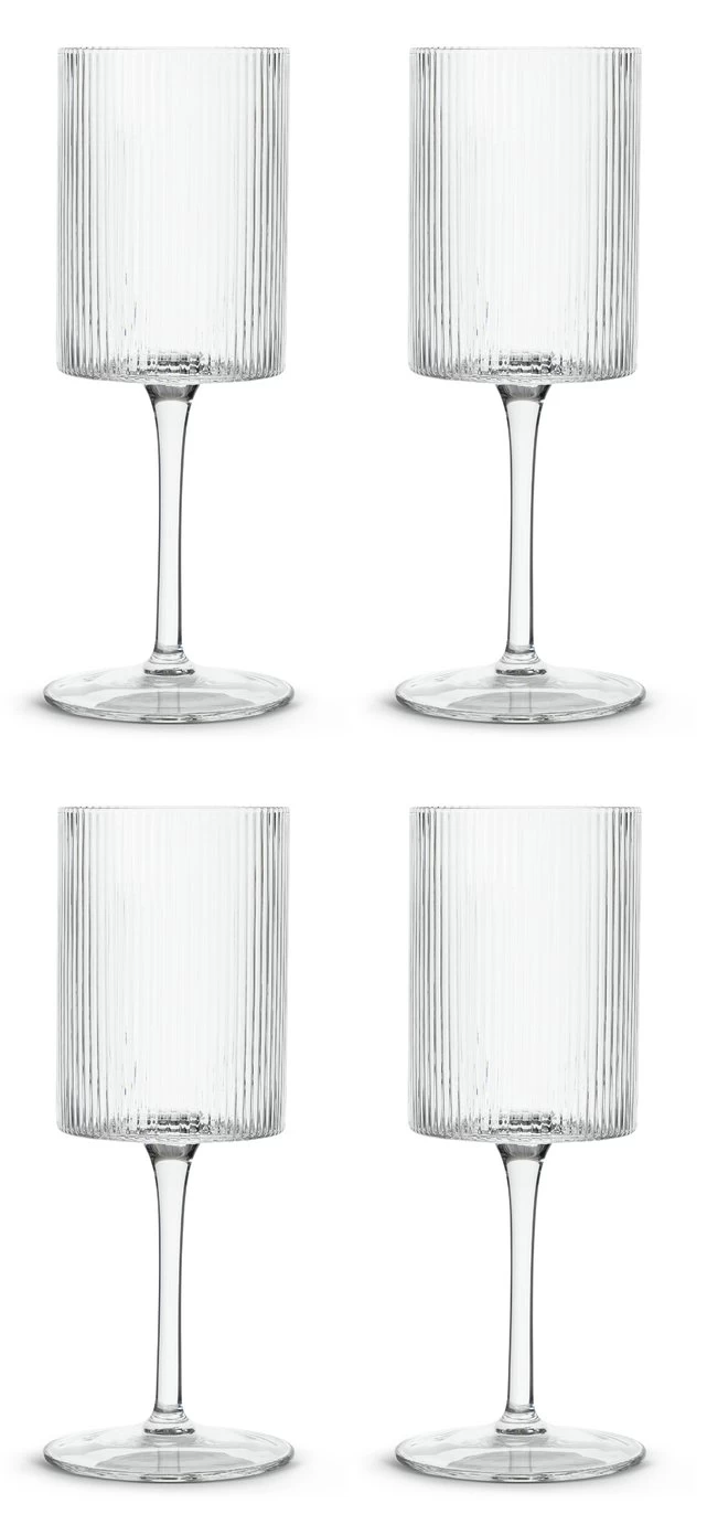 Fine glasses for some fine wine. With an eye-catching ribbed effect and slender stem, this set of 4 will be a distinctive addition to your glassware. A great shape for aerating the wine, to make the most of every sip. Let’s drink to that.