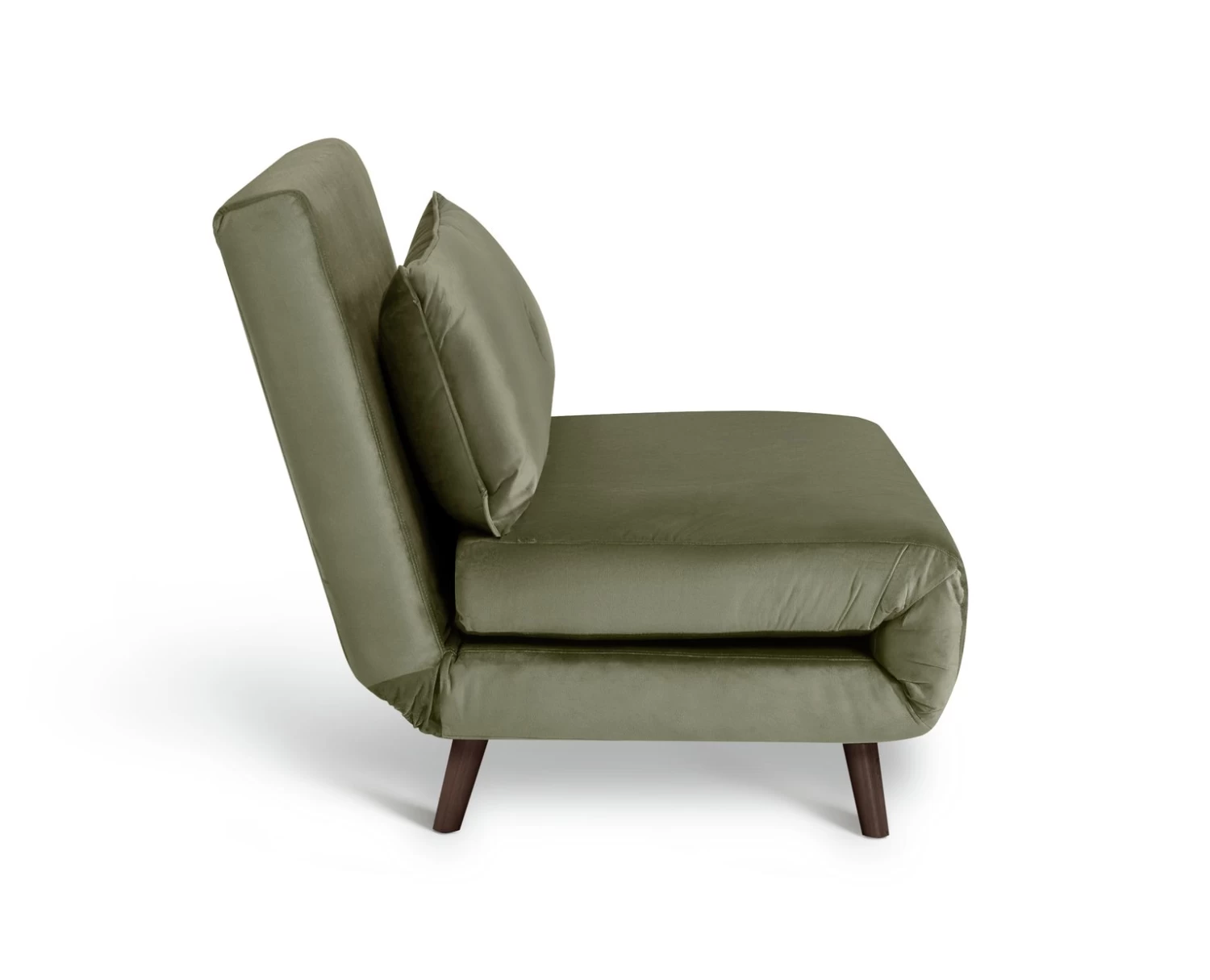 A spare bed for two? It’s Roma to the rescue. In smooth sage our modern chair bed is a smart way to be prepared. Its day job is being a big comfy chair. If it’s on the night shift, it turns into a comfy compact double bed. Clever. Either way the plump stuffed foam cushions are great for relaxing. And the long back cushion with single button detail adds to its contemporary style. Arrives complete, simply pop on the feet.