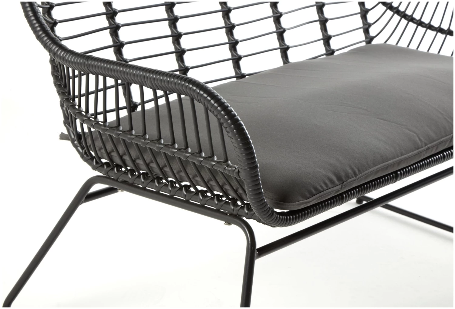 It is raised from the ground on black metal legs that beautifully complement the rattan effect. Minimal assembly is required. Place it in front of a tree or climbing plant to make a wonderful focal point in your garden.