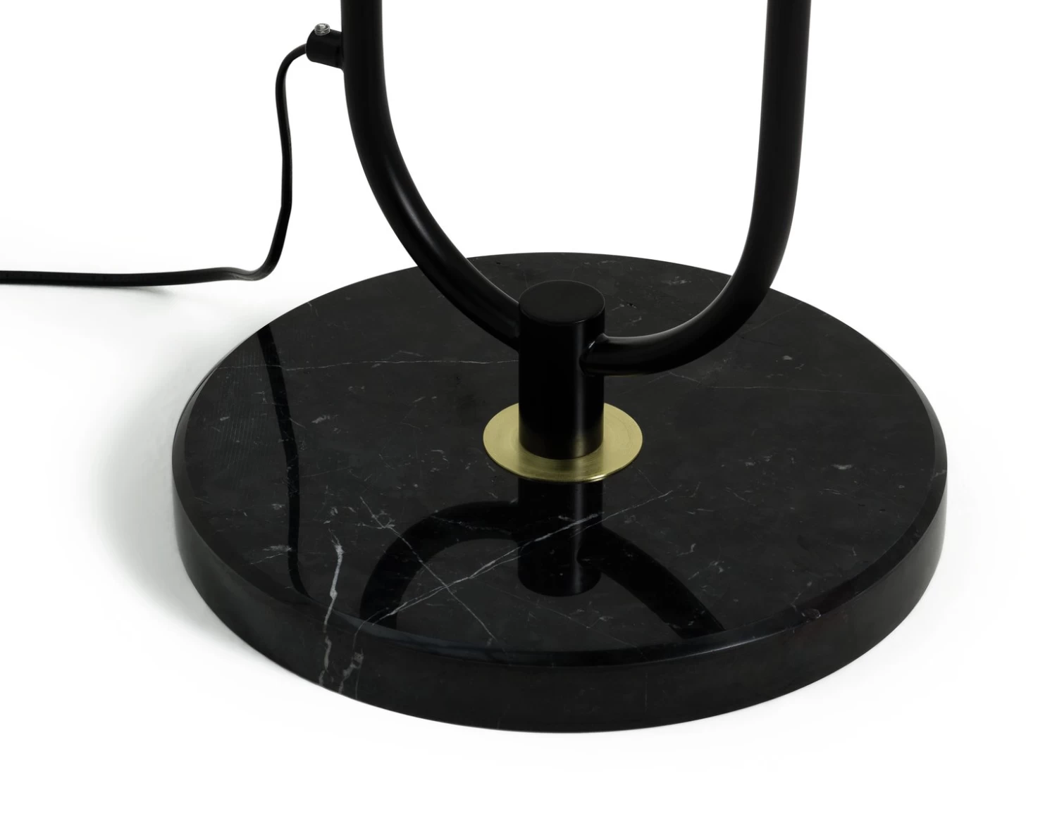 Striking and multifunctional. Simplicity is key in the design of the Sagara floor lamp. Crafted in black metal with a circular opal glass shade, it features a useful shelf at just the right height. Place your lamp in the corner of your living room and you have a useful table for tea, coffee, or books. In the hallway use it for keys or a plant. The light creates a warm, friendly glow and is easy to assemble. It also features an in-line switch to make it easy to turn off and on.