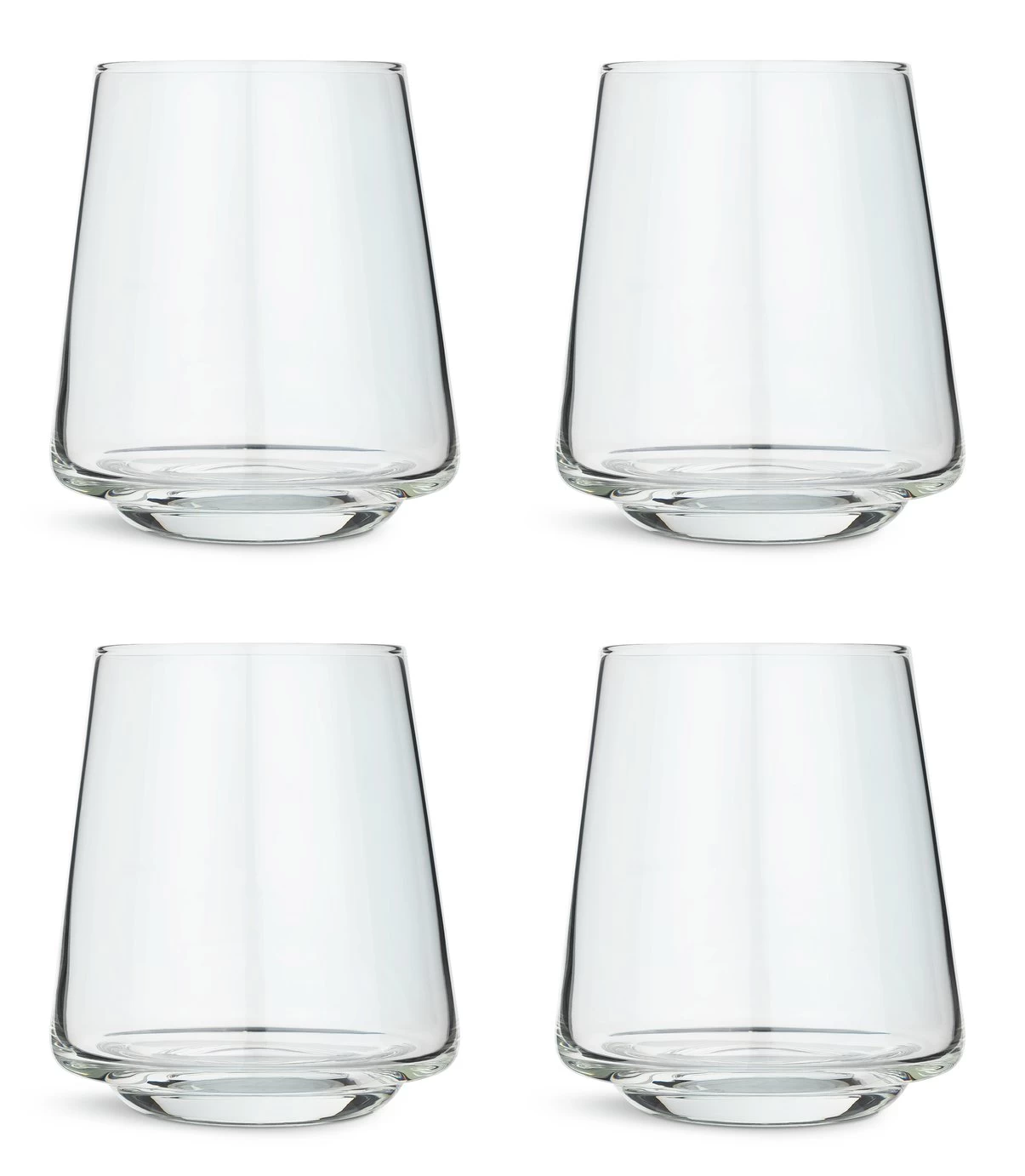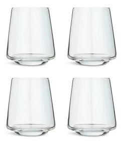 Sip back and relax. Smooth and simple with a designer twist, our set of 4 clear tumblers is delightfully elegant. Its tapered, slimline shape brings a modern feel to the table. Serve water, soft drinks or spirits with this versatile choice. Who’s for ice and a slice?