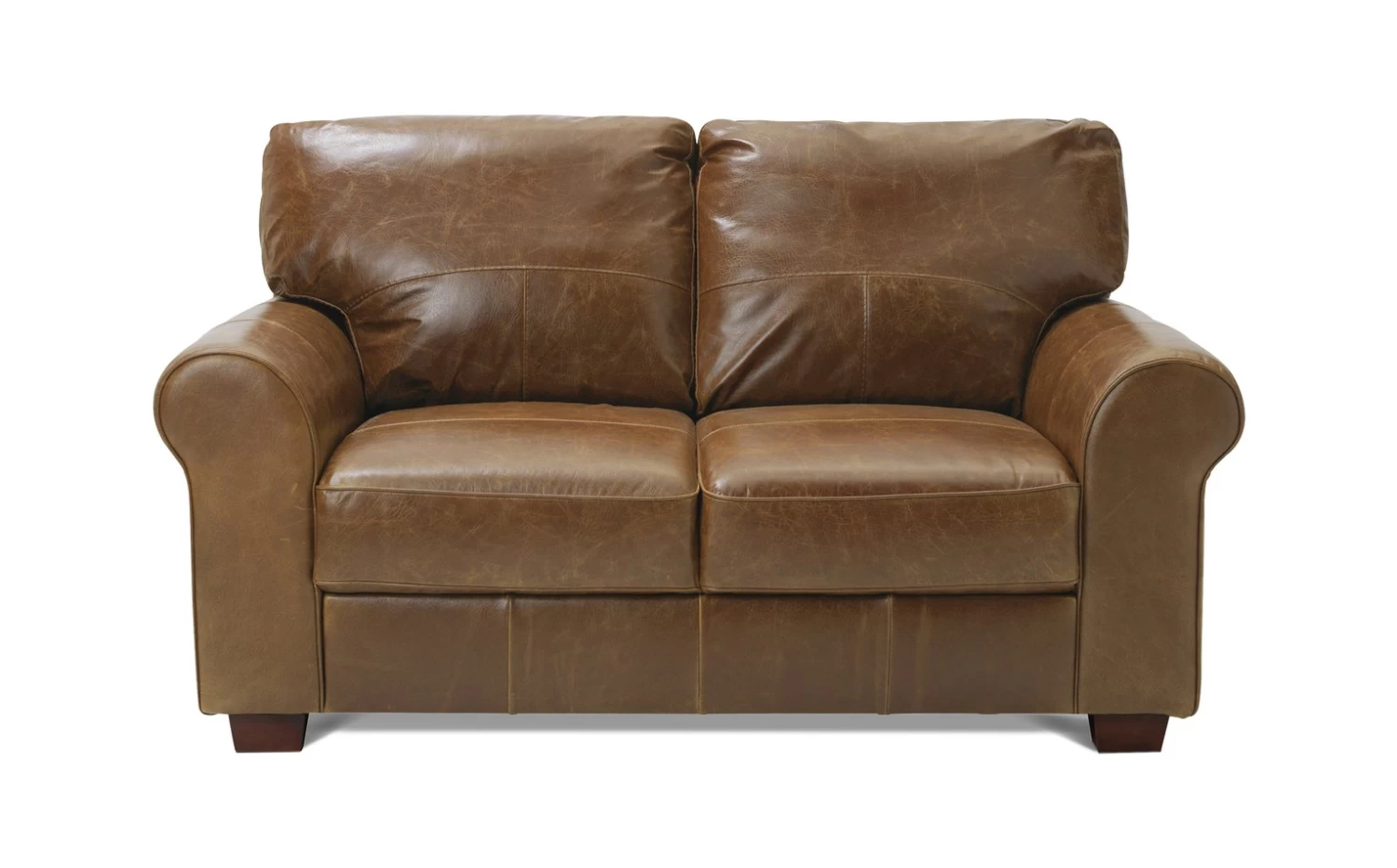 Strong and sophisticated form. The Habitat Salisbury is beautifully crafted using top quality Italian semi aniline leather. It has a subtle creasing, to give this 2-seater a timeless distressed finish. Its beautiful scroll arms offer a classical touch. We love the look of the wide wooden feet, that raise the sofa from the ground. A chic choice.