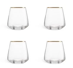Refreshingly glam. With their curvy shape and dainty gold rims, these 4 tumblers bring a splash ofstyle to the table. Elegant, refined and practical too. They’re great for orange juice at breakfast or water with dinner. A little luxe touch for everyday.
