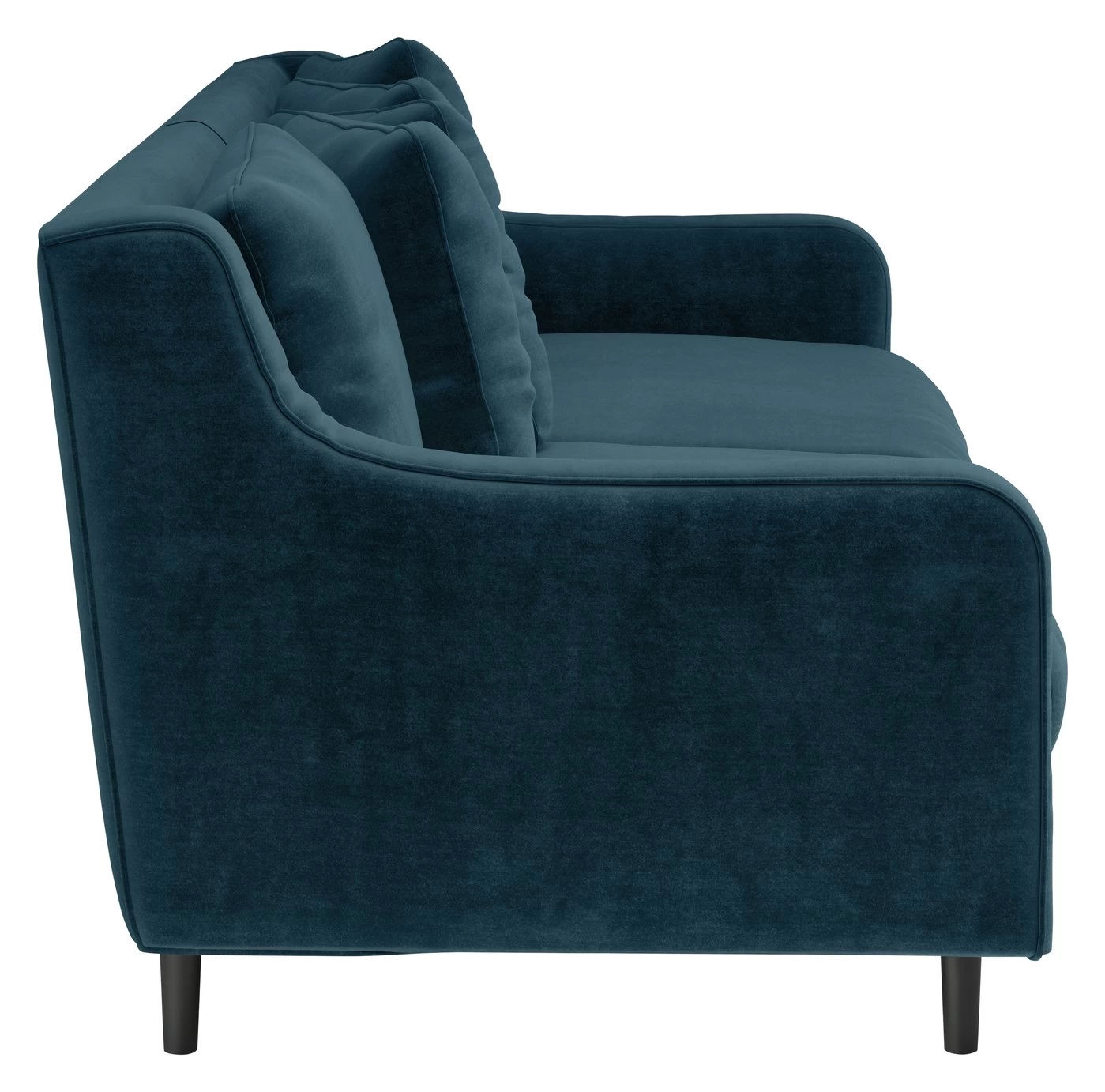 With elegant curved arms and deep seated cushions, the Swift 3-seater piave velvet ink blue sofa gives a nod to a mid-century design. Upholstered plump, feather-topped foam seat cushions and feather-filled scatter back cushions offer your body a high level of support as well as a sink into comfort feeling. A detailed Stitch runs across the curved arms that add to the design and gives the right amount of opulence. Perched on Dark oak legs, the grain of the wood compliments the sofa in luxurious ways.